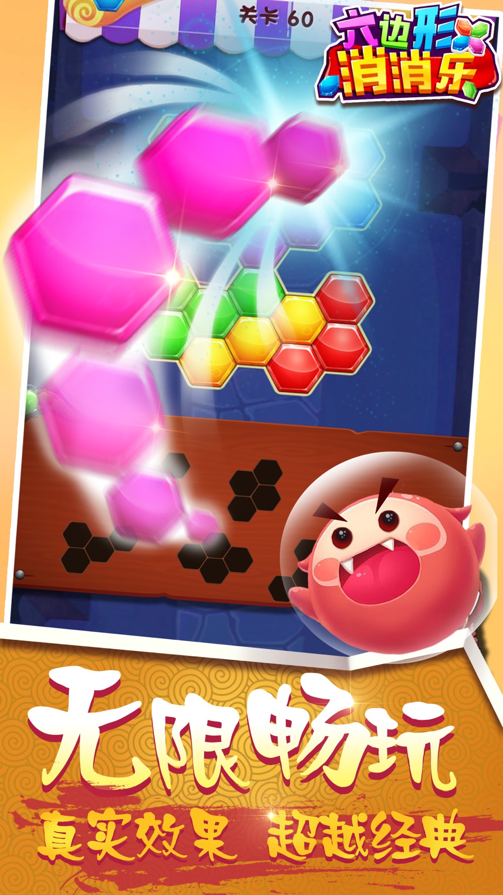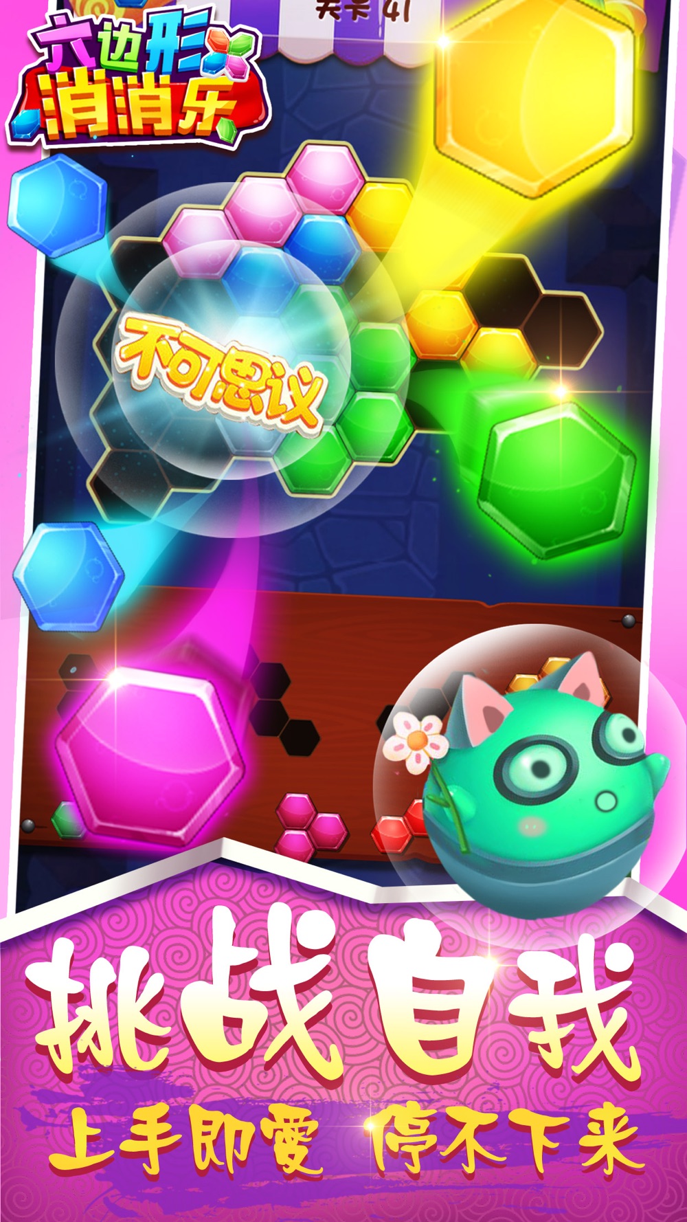 曾登上首页推荐的最有创意的六边形消消乐游戏,这是一款魔性方块达人小游戏,颇具挑战性的六角消除玩法让人停不下来,还可以将游戏得分分享到社交平台,和好友互相晒高分也不失为杀时间的利器。