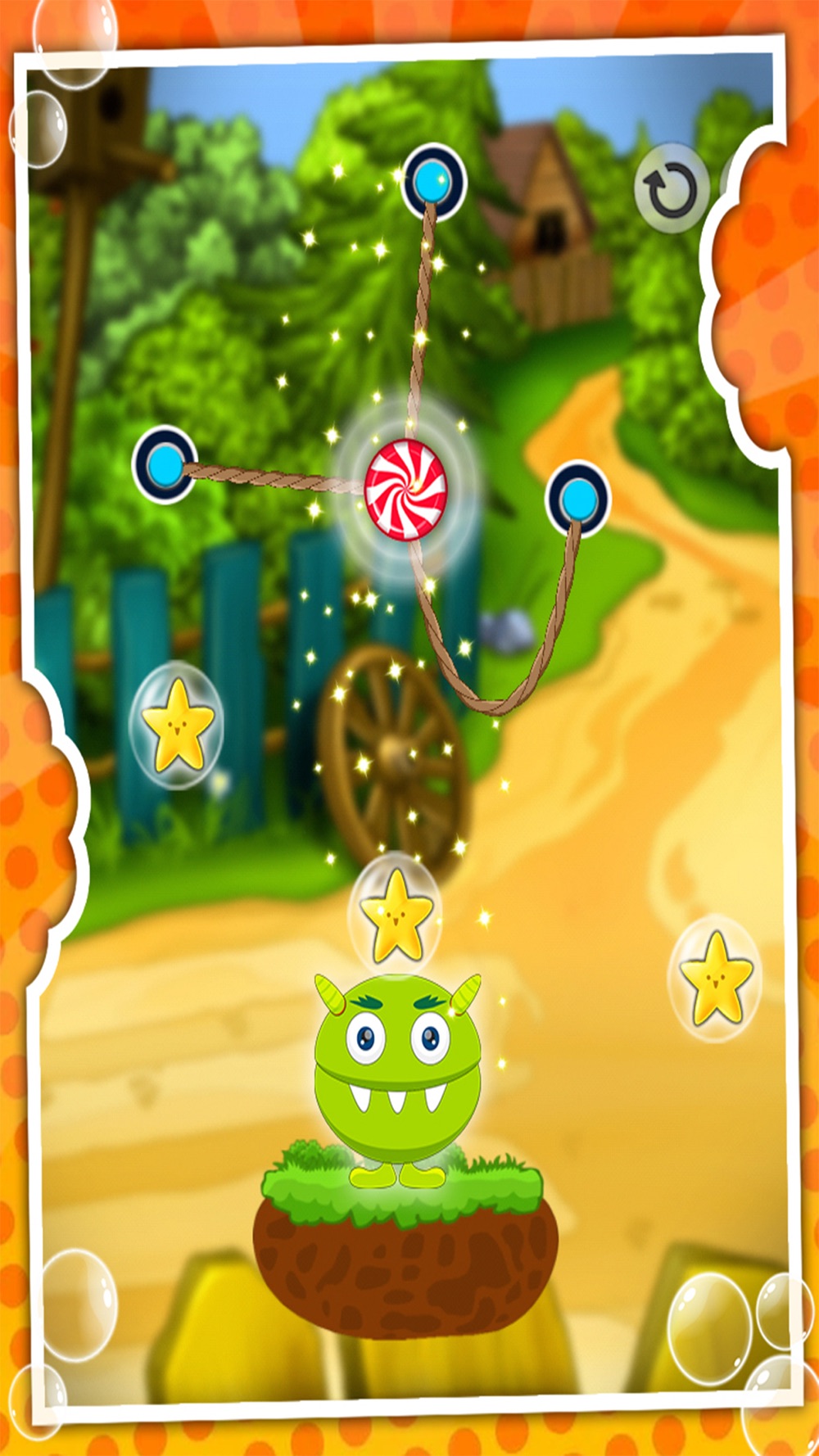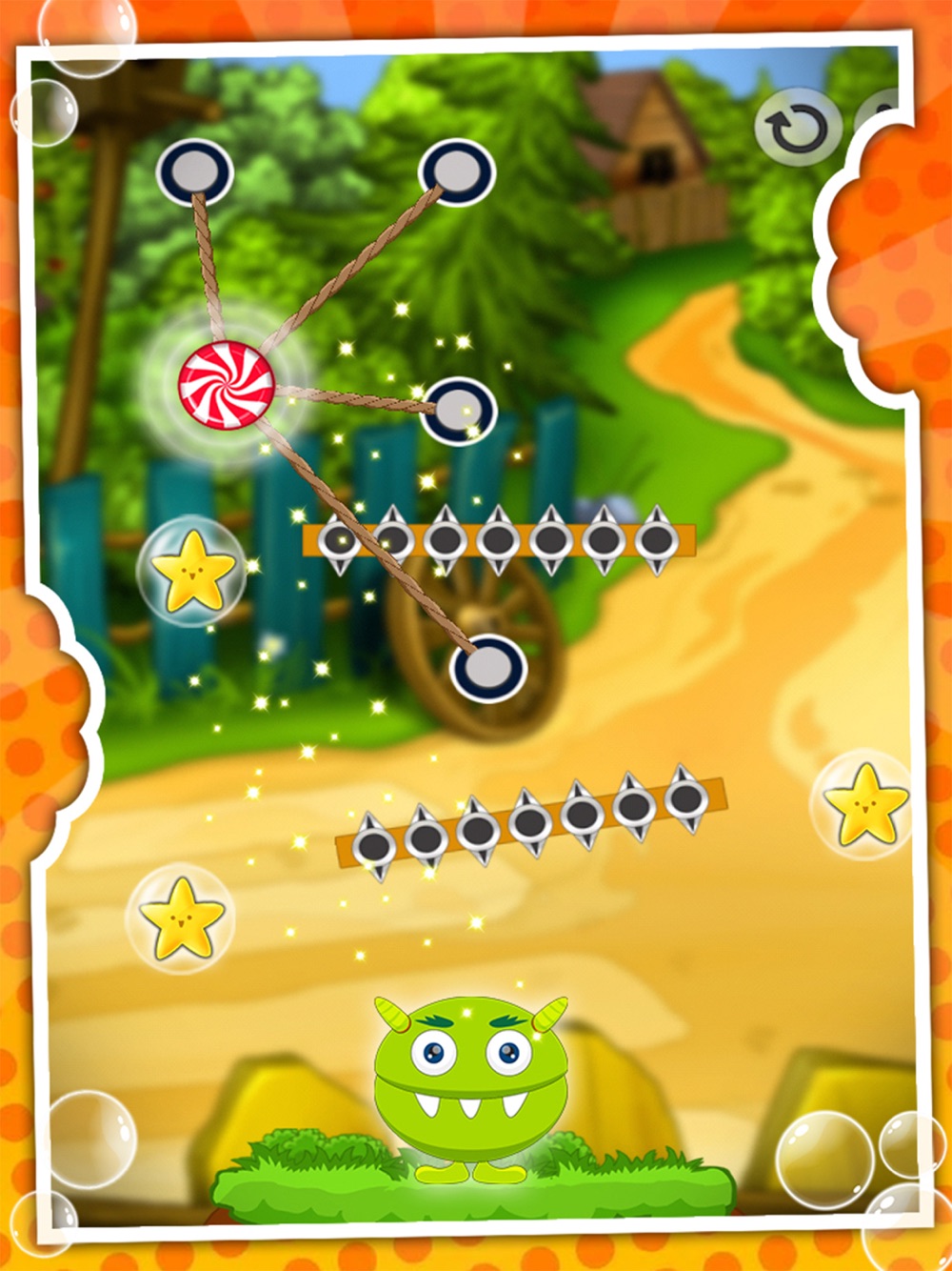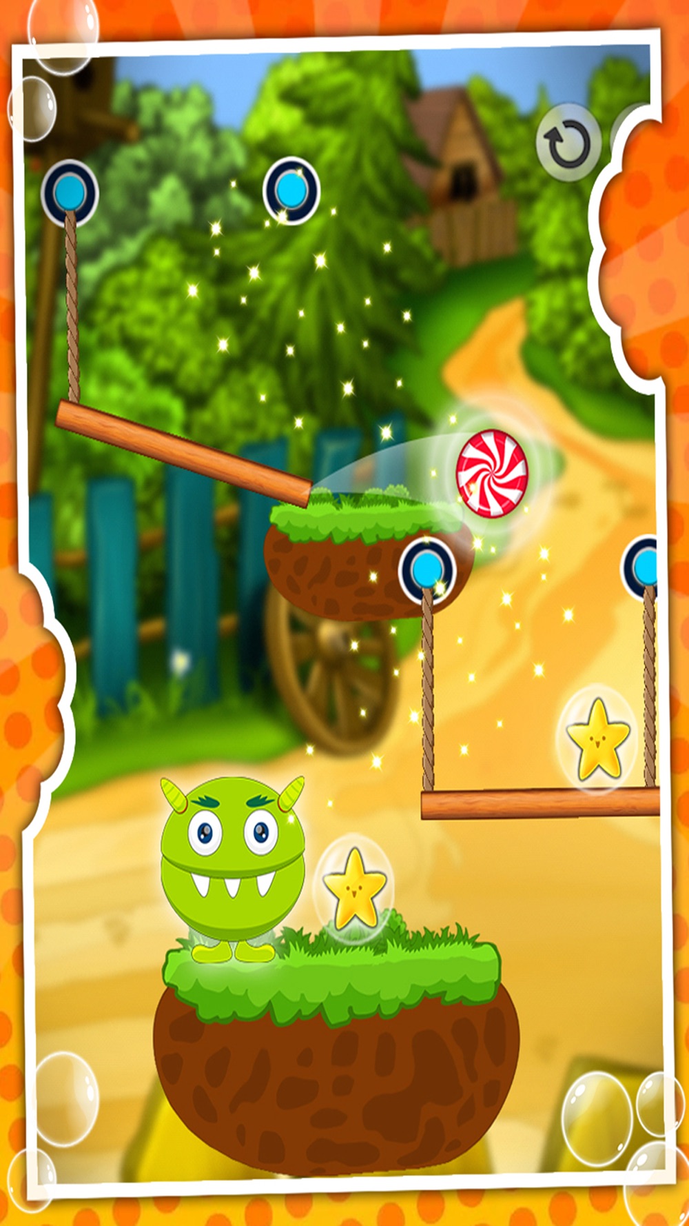 青蛙非常饿,通过切割绳子喂他甜蜜的糖果。当你进一步移动时,困难程度有所增加。