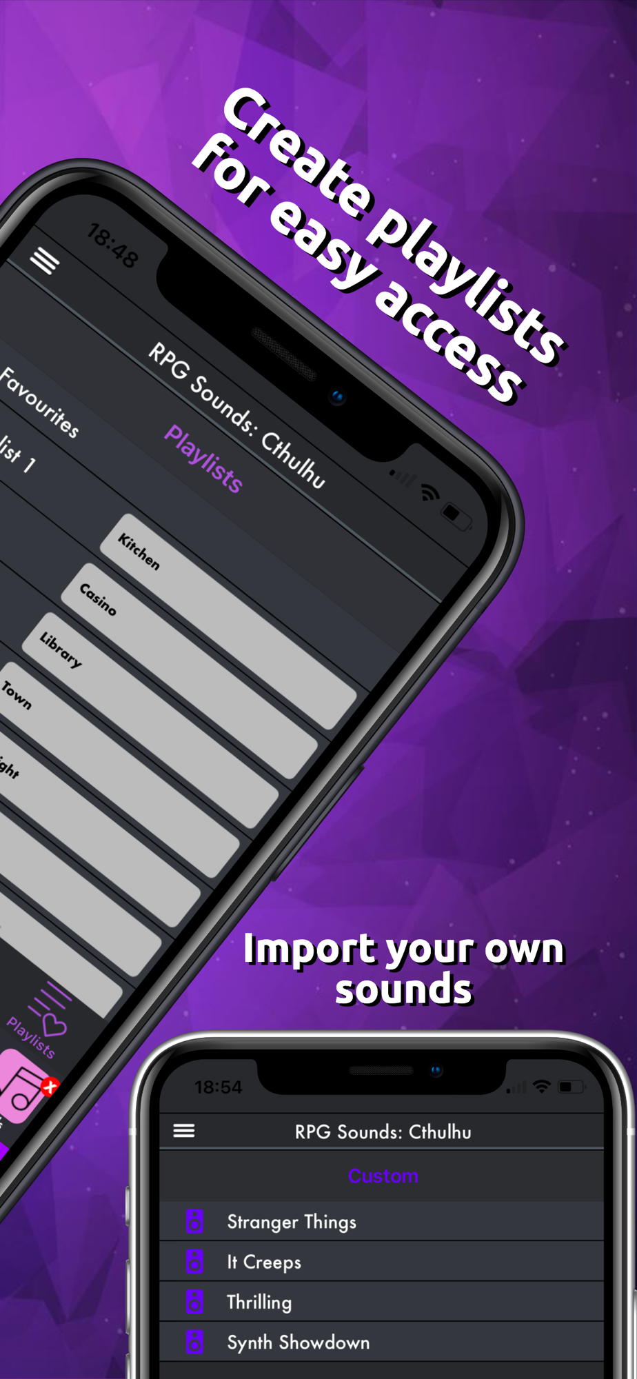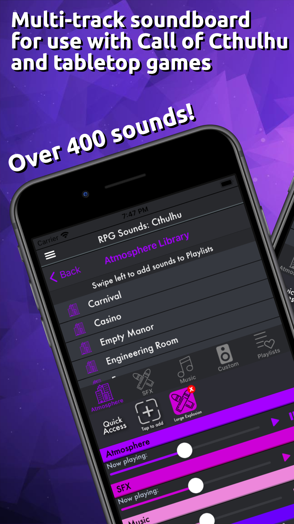 *Multiple Audio players: Play atmospheric sounds, sound effects, music and your own custom tracks all at the same time for full immersion!