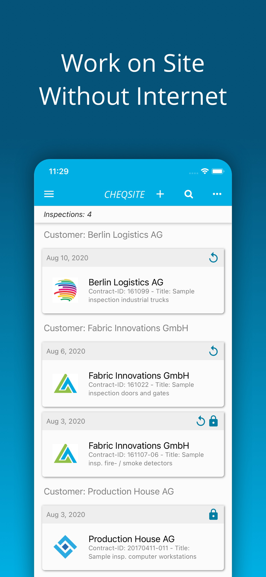 With the CHEQSITE applications you do on-site workplace and asset inspections much faster and more efficiently. Import your customer data from the address book or previous inspections. Use preinstalled DGUV checklists or customize the templates according to your specific needs as suggested by national OSHA, HSE, PUWER, ANSI, EHS, and further legal and company specific regulations. Assign codes / IDs to equipment and add defects or hazards. At the next inspection you simply scan them, and the equipment information is automatically applied.