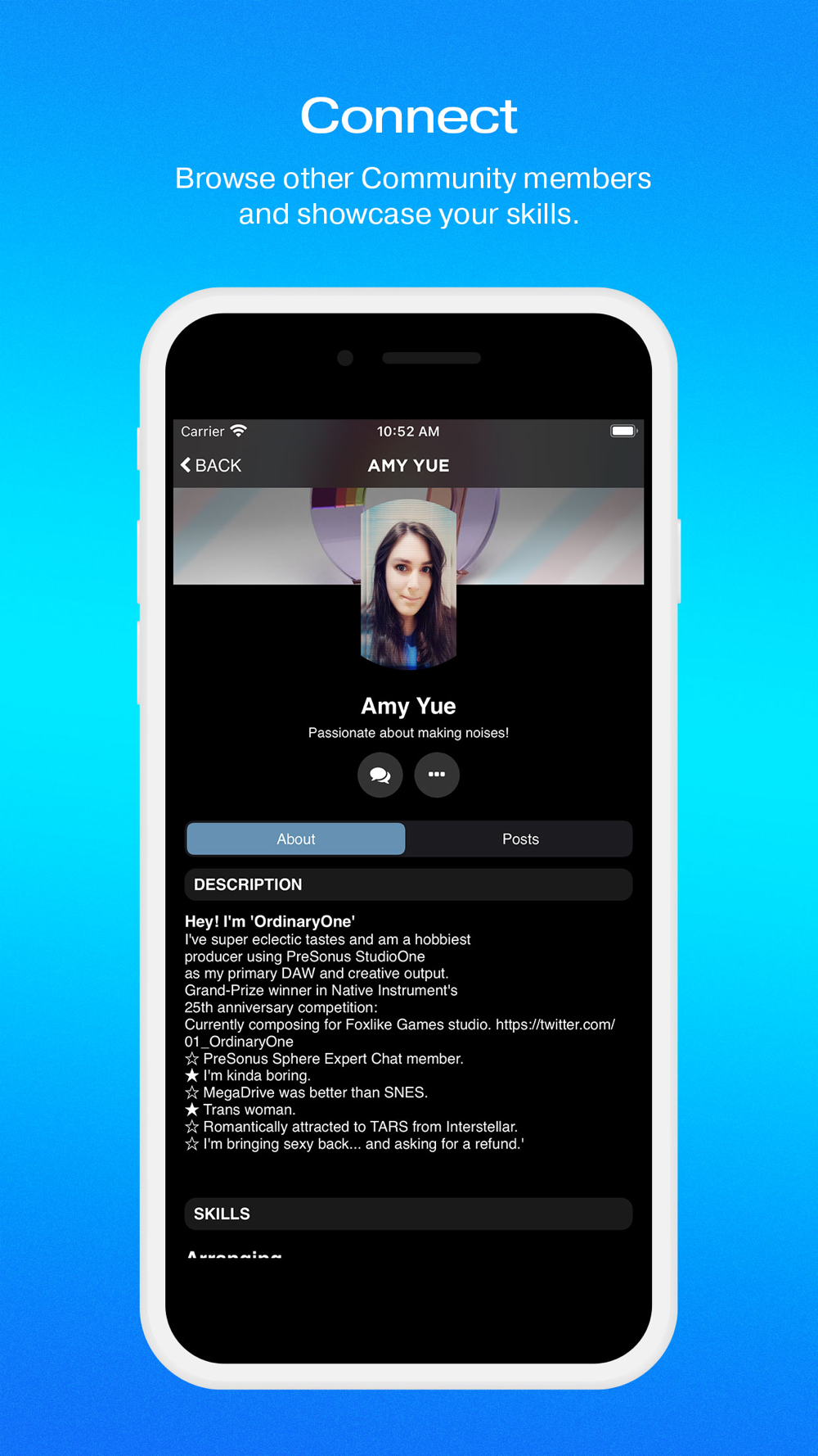 Connect with other PreSonus members in Community to find collaborators, share mixes, get feedback on your new album cover or your latest music videos, and so much more. Share your unique skills, showcase your favorite creations, and find other PreSonus Sphere members to chat with about your favorite audio topics. Not ready to be social just yet? That’s ok, too. You can choose to make your profile visible to the larger PreSonus Sphere community whenever you like.