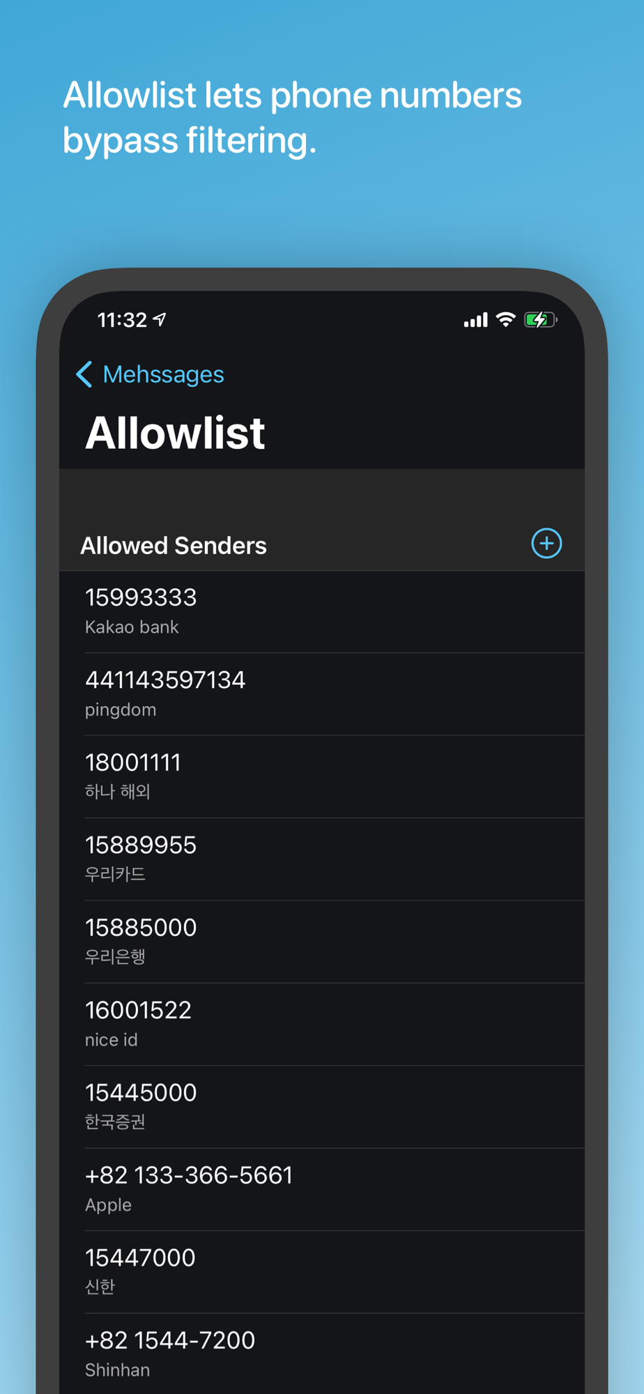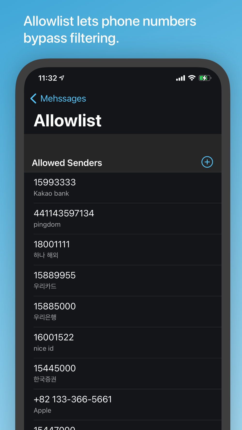 Use iMessage app to add an item to the Allowlist or paste a phone number from clipboard.