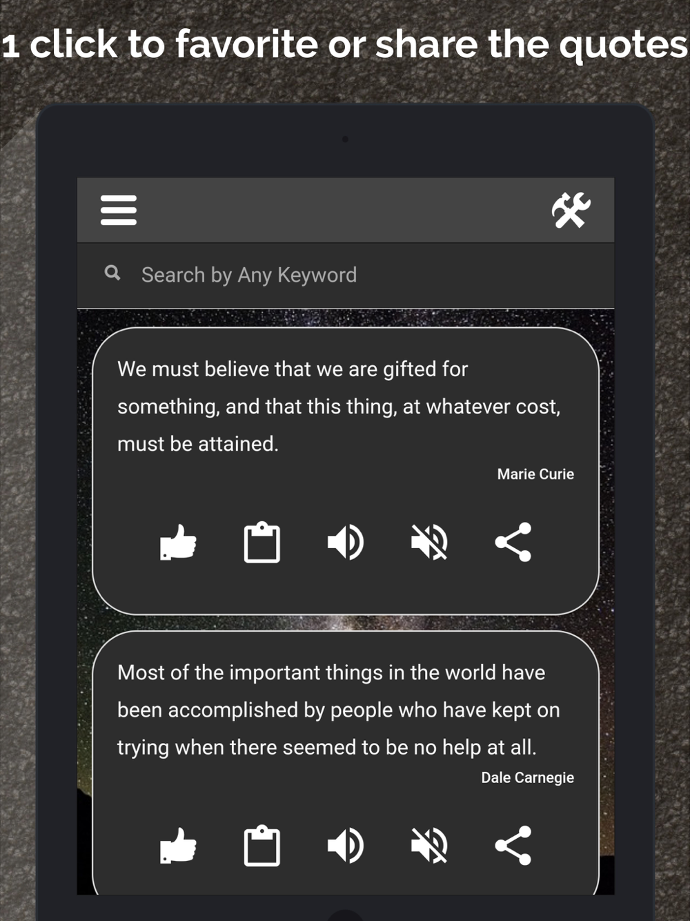 - Extra Tinder swipe card view for more than thousand random quotes.
