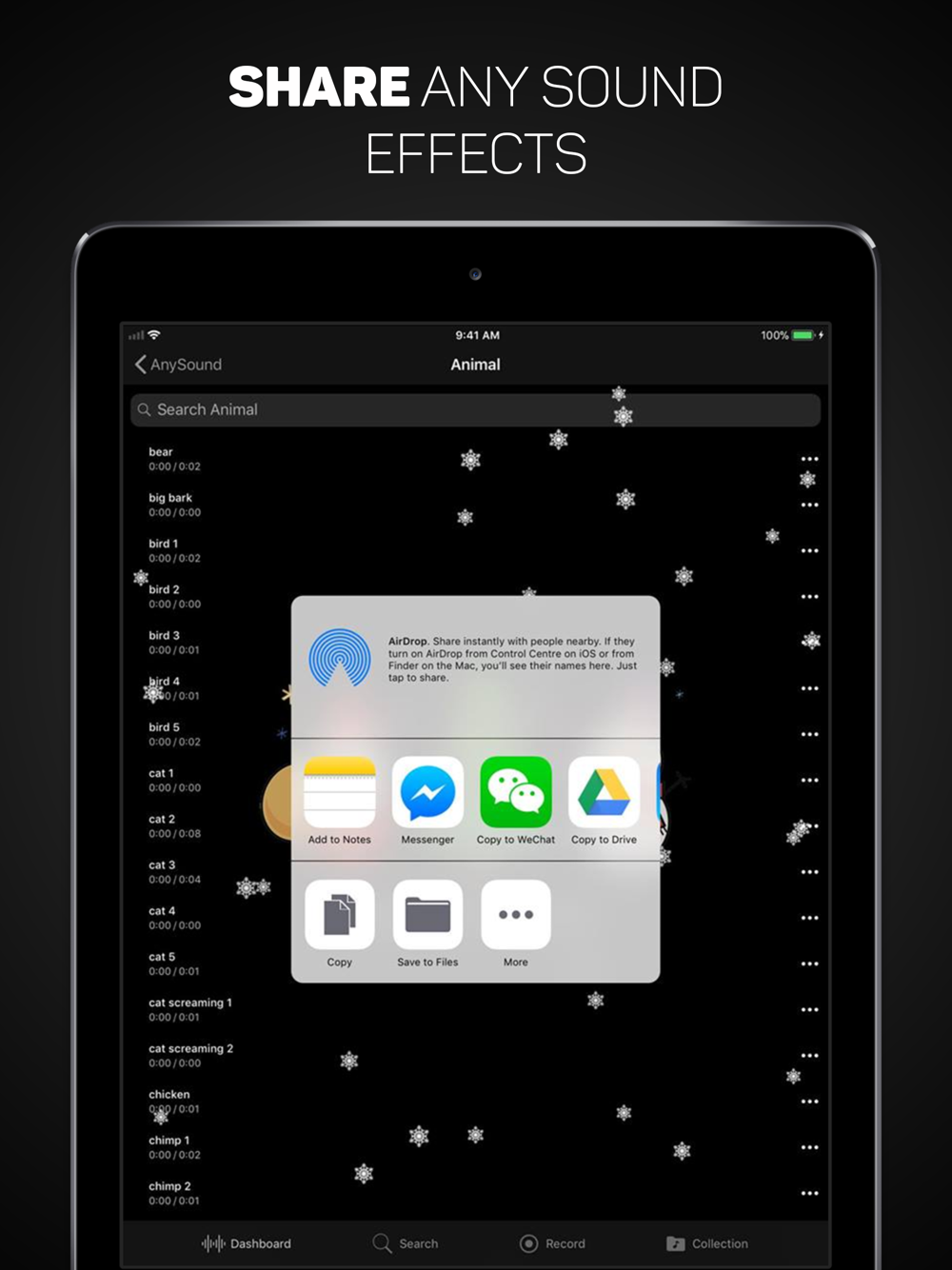 • To reply your family/friends with sound effects instead of boring text via the AnySound Share feature