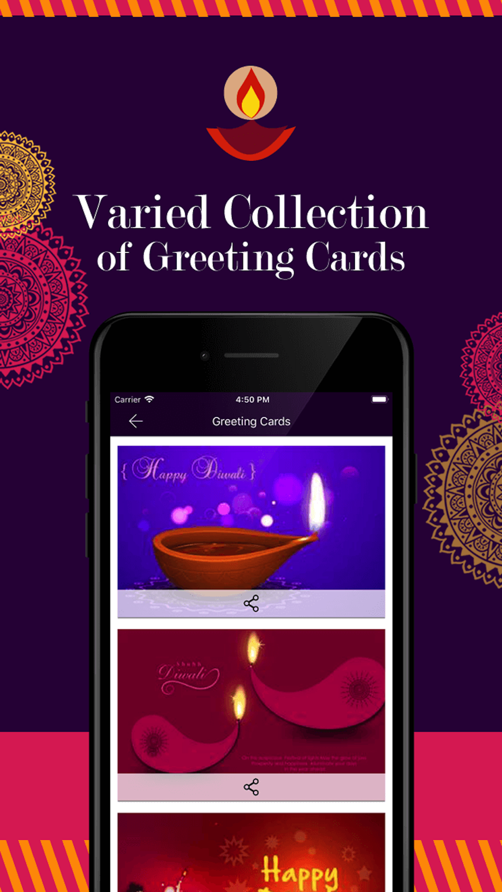 * Choose your favorite Diwali card from a wide range of HD quality cards available