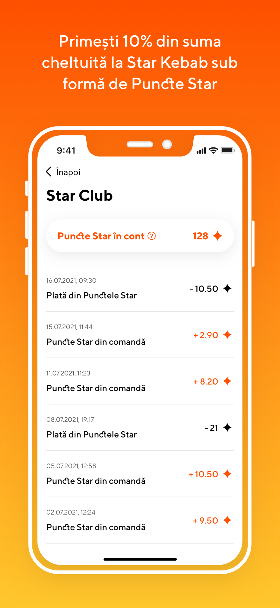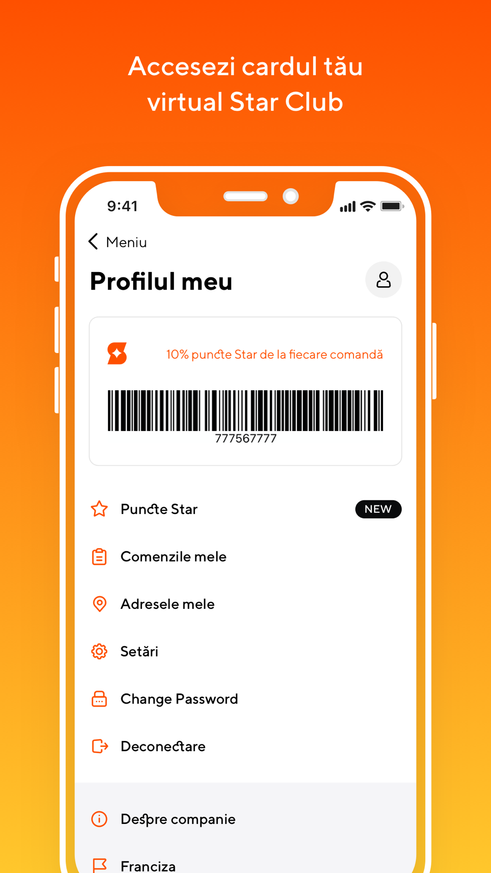 Pe lângă funcția de self-order, în aplicație totul este la îndemână. Poți verifica oricând câte puncte ai în Star Club, dar și istoricul acumulărilor tale. Comanzi online cu livrare acasă sau la birou și, mai nou, știi exact la ce etapă este comanda ta.