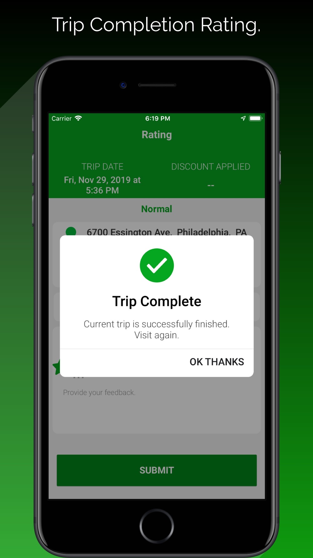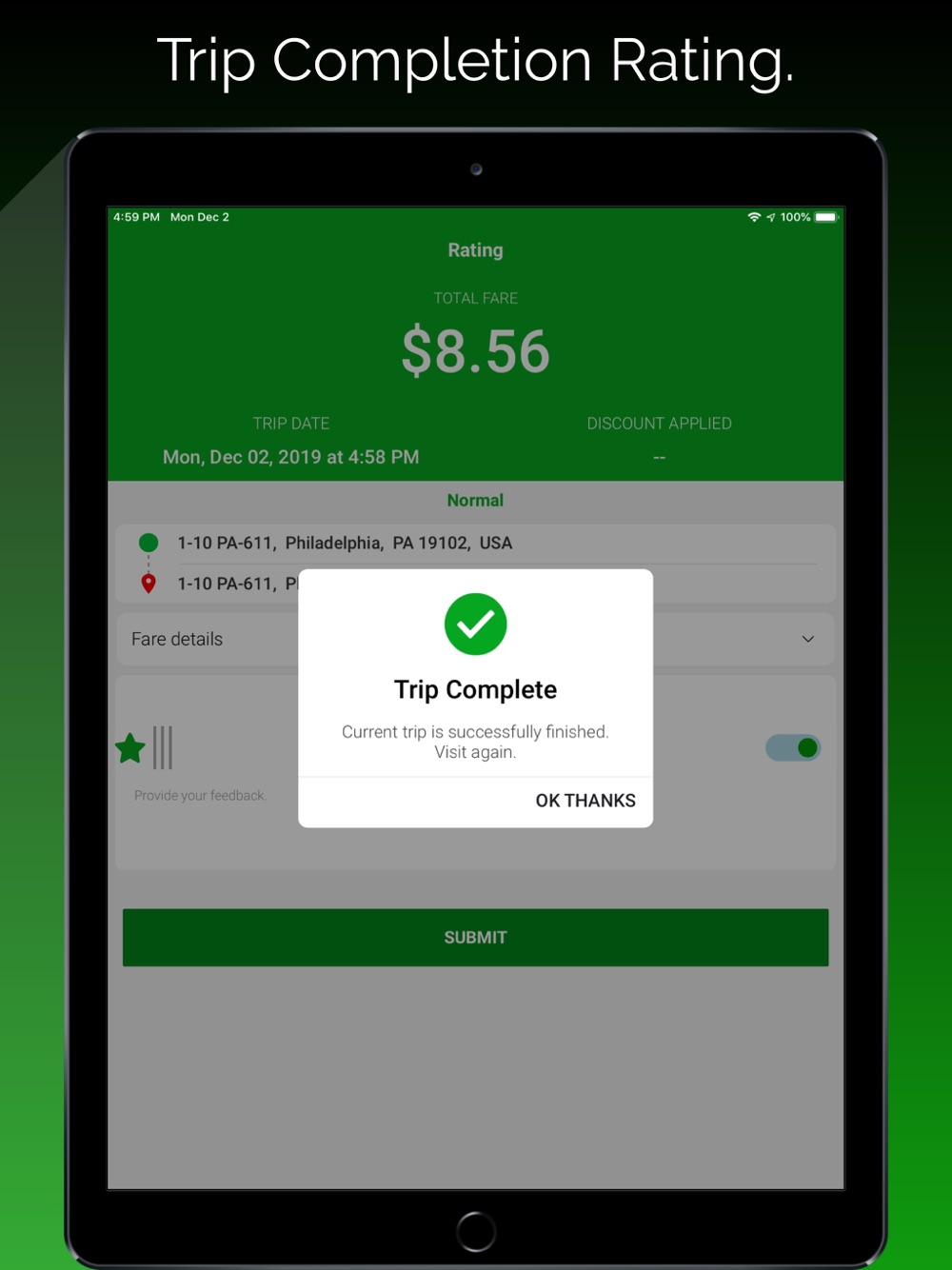 - After trip completion, both driver and rider can rate each and provide feedback to help us improve.