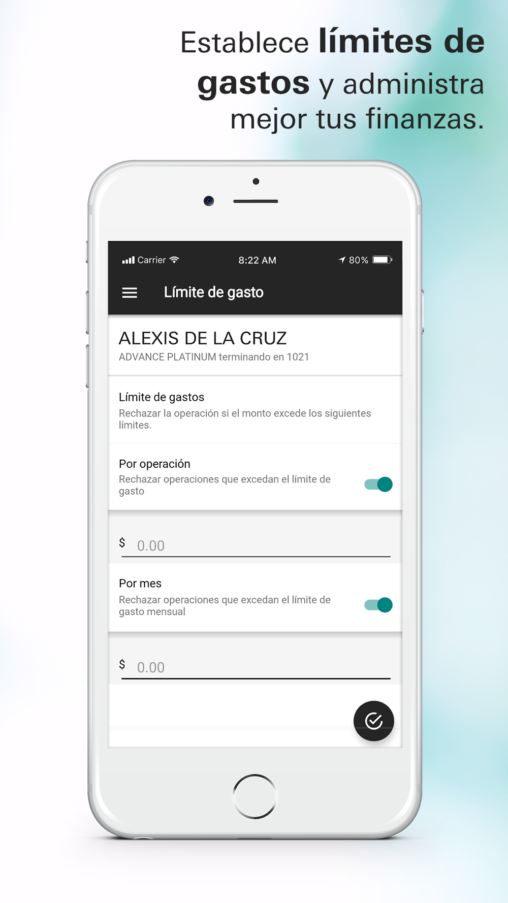 -Establece límites de gastos y administra mejor tus finanzas.