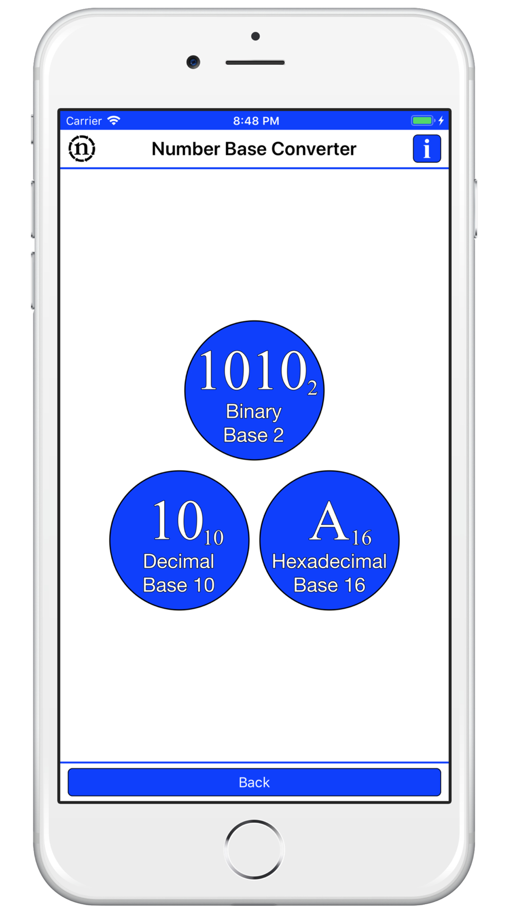 This feature contains three options that allow the user to enter either a Base 10 Decimal number, Base 2 Binary number or Base 16 Hexadecimal number. The input number is then converted into its corresponding Decimal, Binary, or Hexadecimal equivalent.