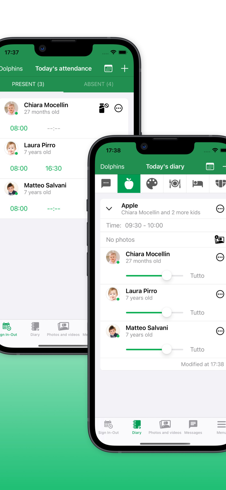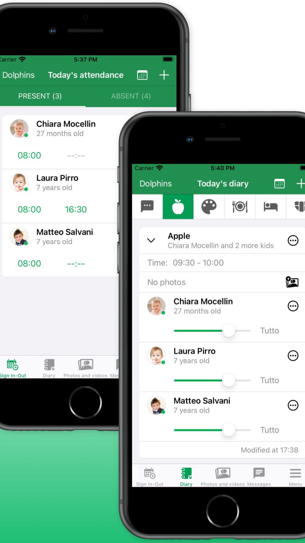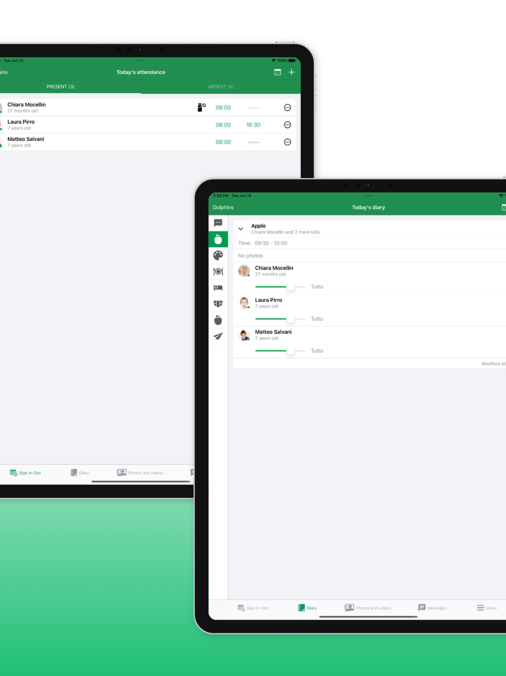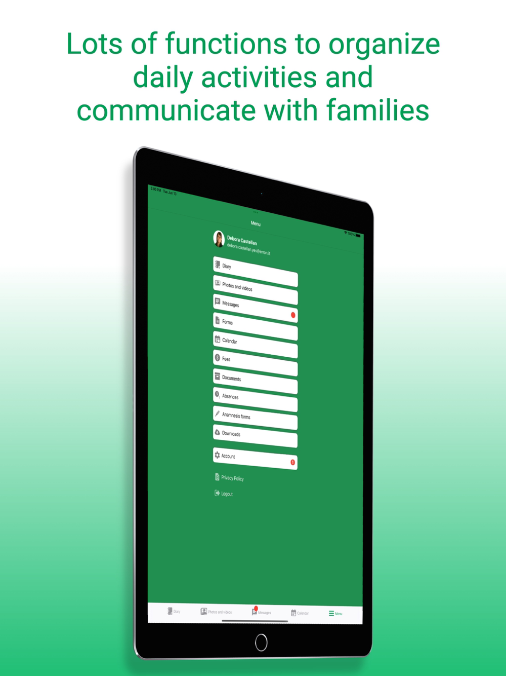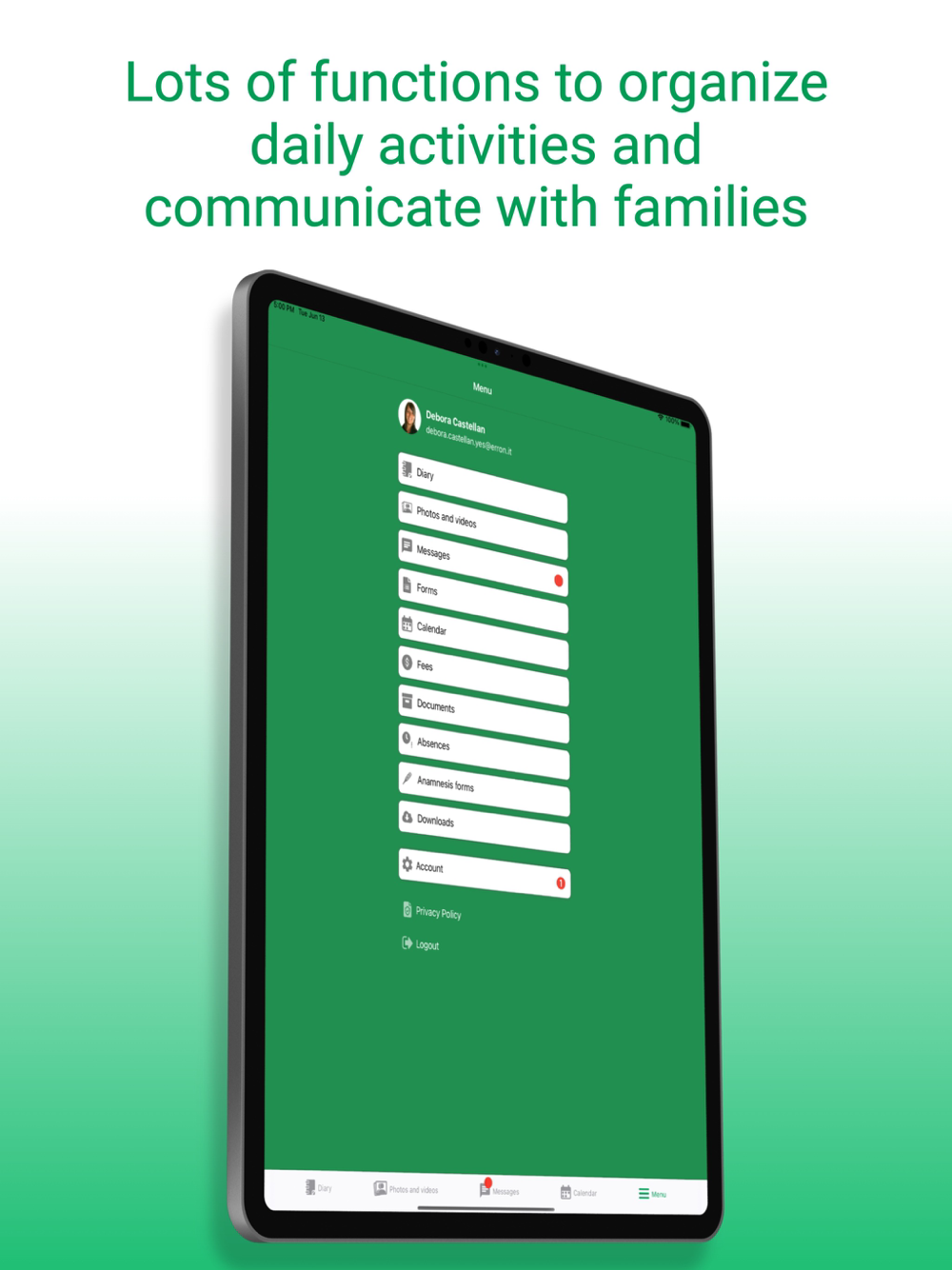The app allows parents to read the diary of their children day by day, discovering all the information about activities, meals, notices and state of health.