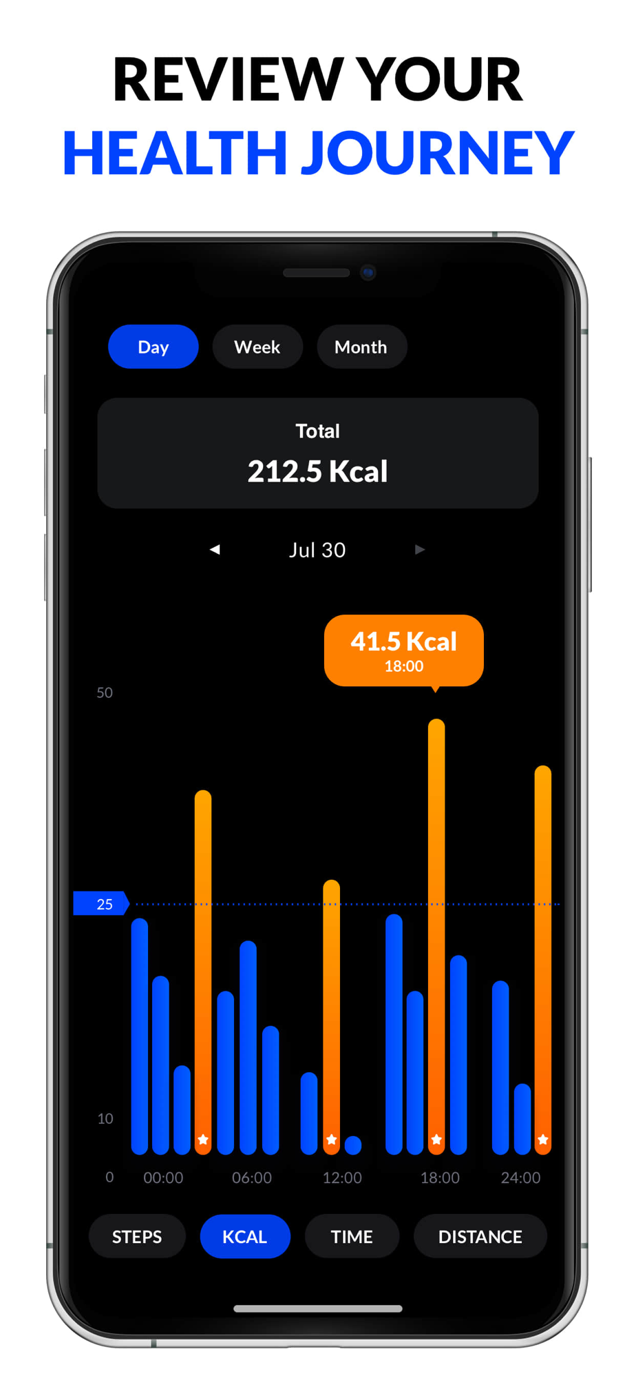 The report graphs are the most innovative ever, they are specially designed for mobile devices to help you track your walking data. You can check your last 24 hours’, weekly and monthly statistics in graphs. Sync data to Apple Health.