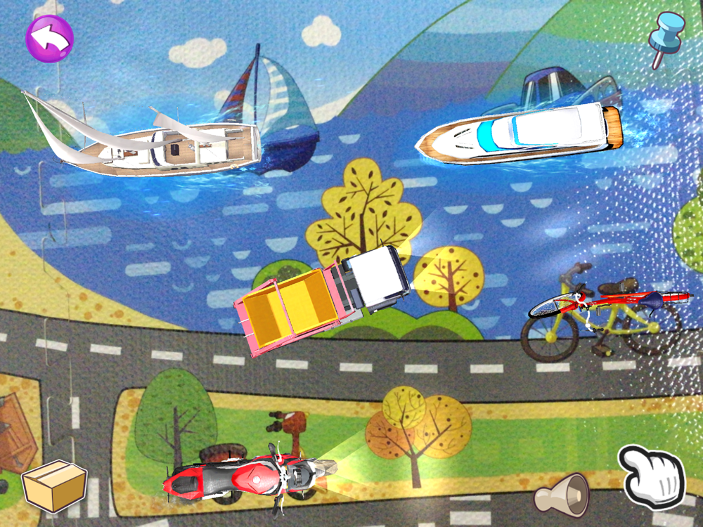 摇摇摆摆的小企鹅,迈着大步的棕熊,准备起飞的直升机,呼啸而过的警车……通过AR增强现实技术,让宝贝犹如置身户外,和动物朋友和交通工具互动,不仅为宝宝的爬行增加乐趣,还能寓教于乐,开发宝贝智力。