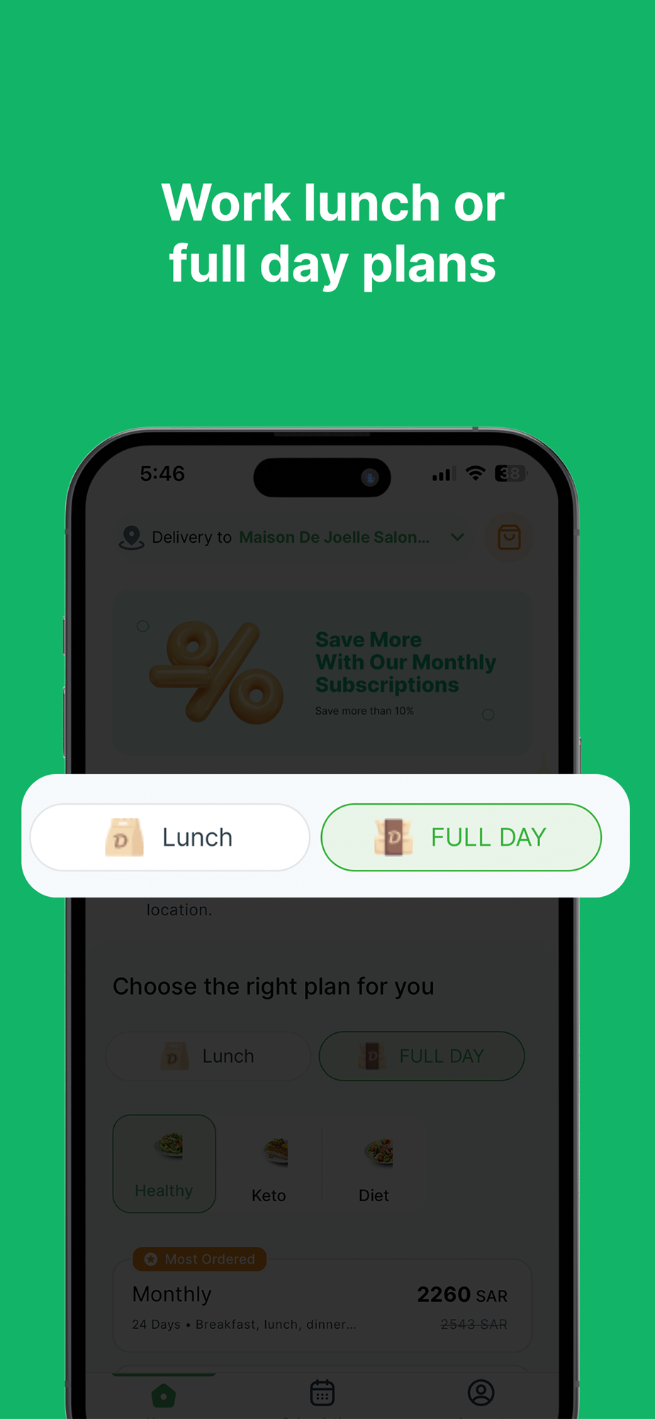 Dailymealz cooperates with a selection of the best restaurants, including Jars to go, Smart Plate, Right Bite, Poke Me, Greenish, Mr. A’s, Zero Fatty, Albaik, Ricci, Subway, Alromansiah, Pasta Delizia, Kudu, Worthy, Amo Hamza, Little Caesars, Belo, Applebee’s & much more.