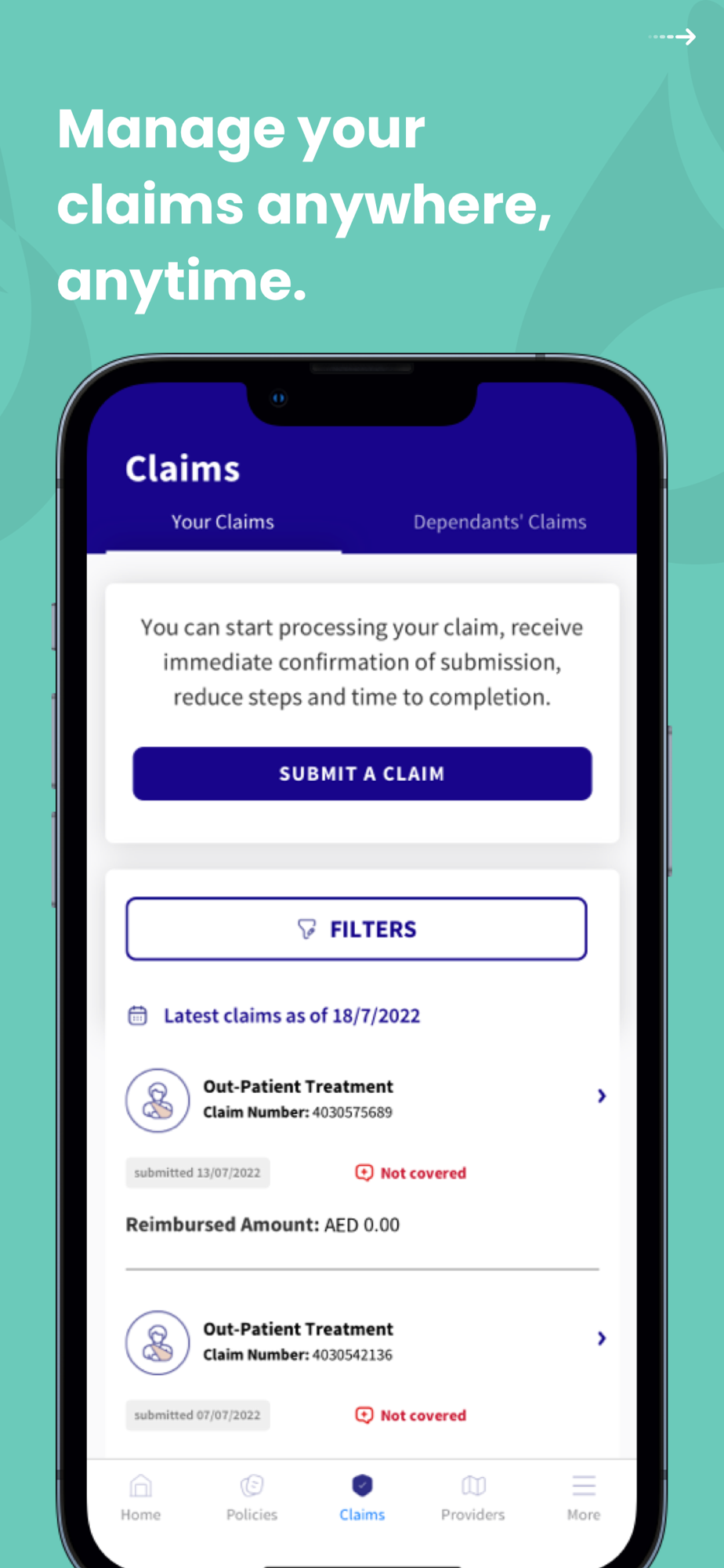Submit, claim and manage your individual and dependents’ claims with ease.