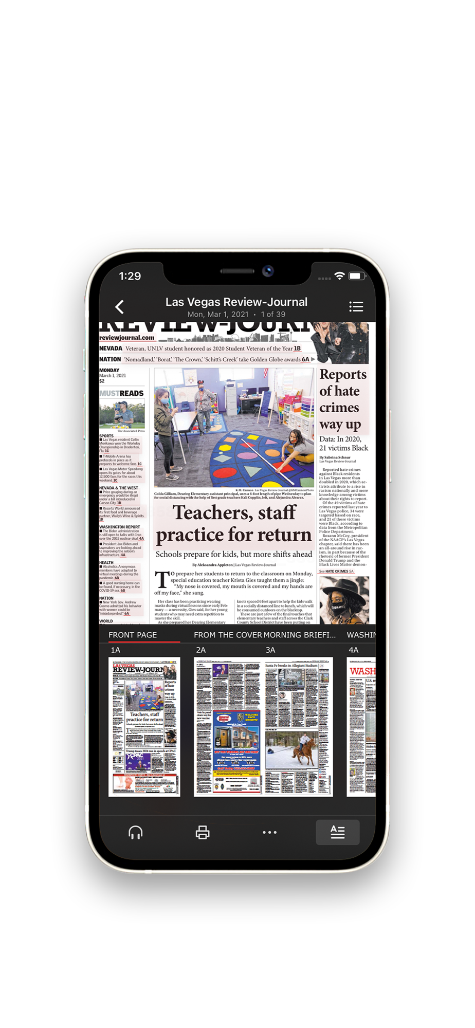 The Las Vegas Review-Journal news e-edition delivers the print newspaper to your device. The e-edition lets you enlarge the type, tap on links, and discover previous issues you may have missed. Take a digital version of the newspaper with you wherever you go!