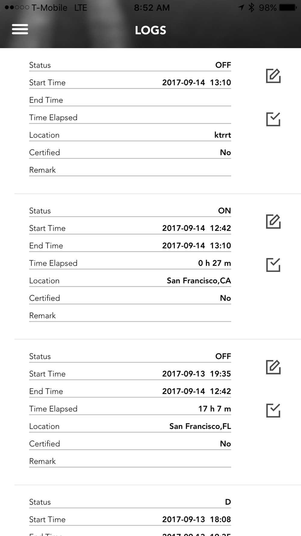 -Mobile device permits duty status changes only when the vehicle is at rest