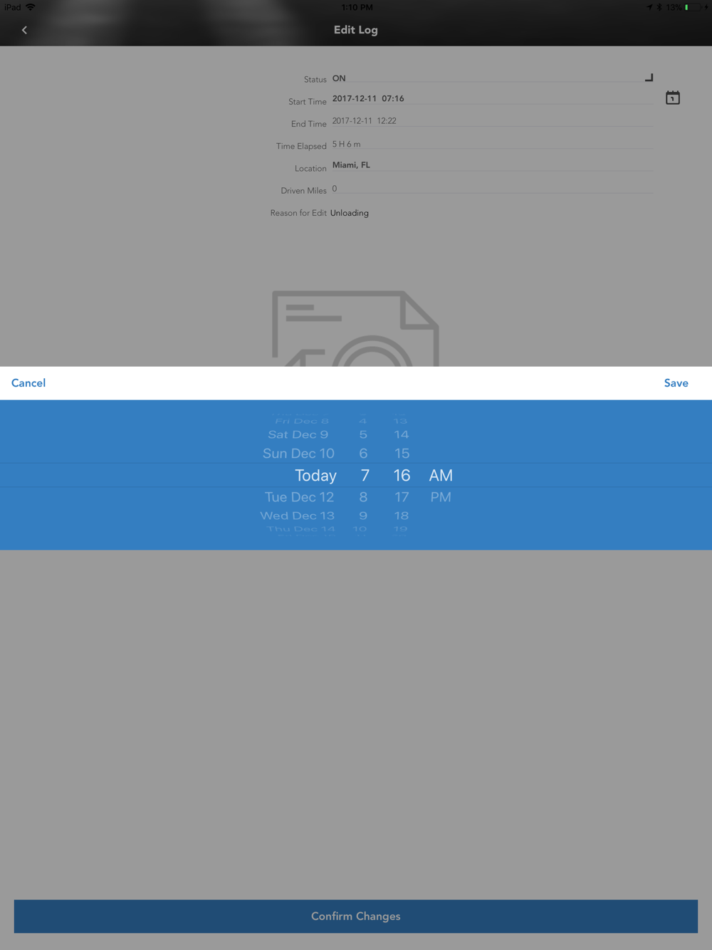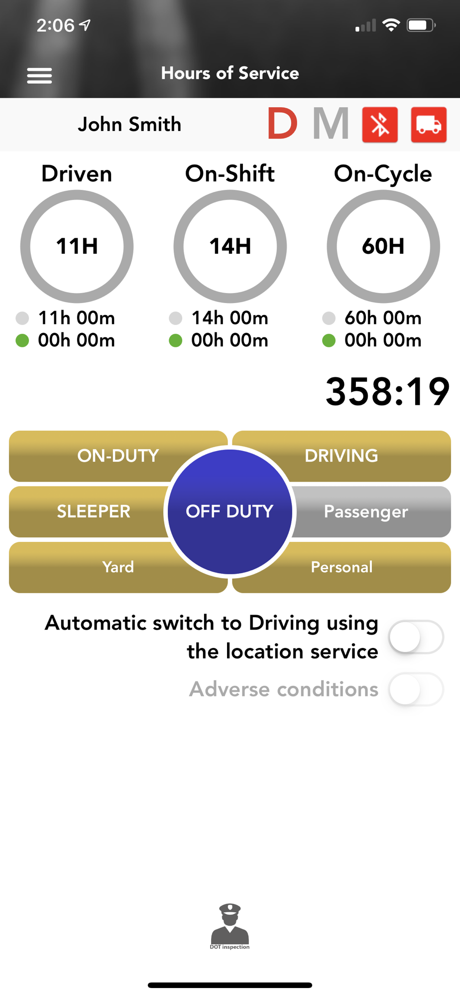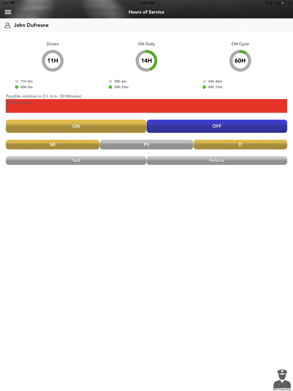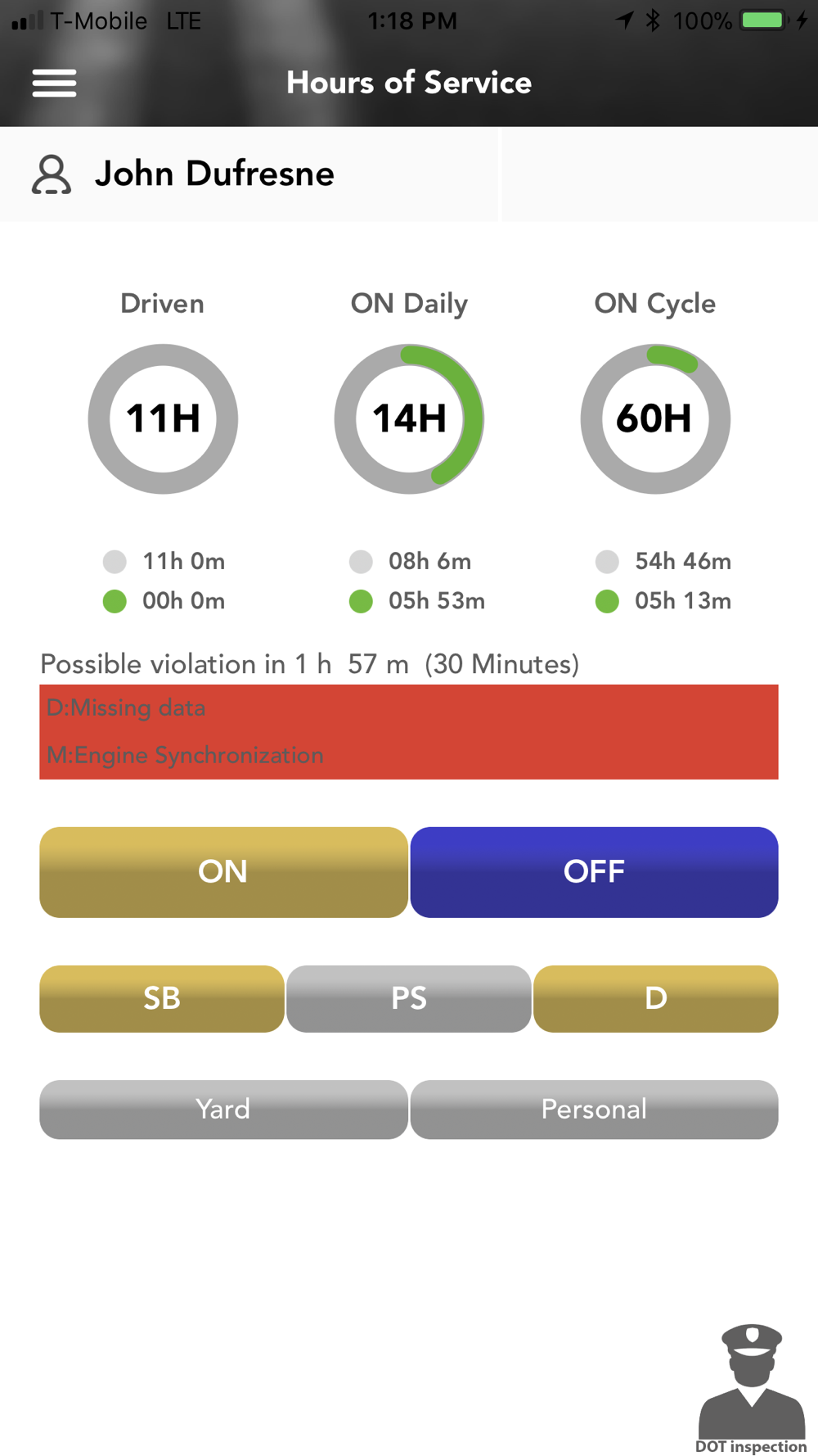 -When the truck is stationary for 5 minutes or more, it will default to on-duty not driving and the driver must enter the proper status