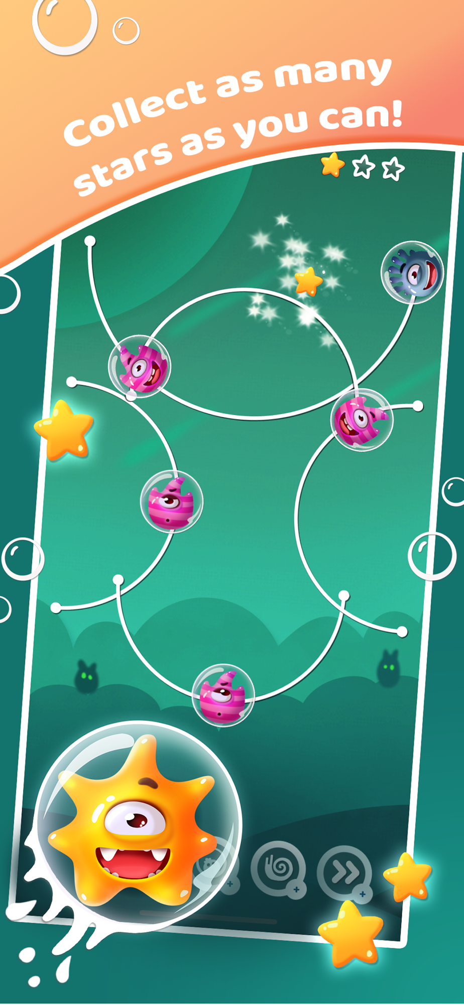 Tap the bubble monsters to move them in a pendulum like swaying movement along the arc. Time the taps carefully so that the monsters do not bump into each other. Get all the monsters in a level swinging to complete the level. Choose the order to tap monsters carefully and get all the three stars in a level.