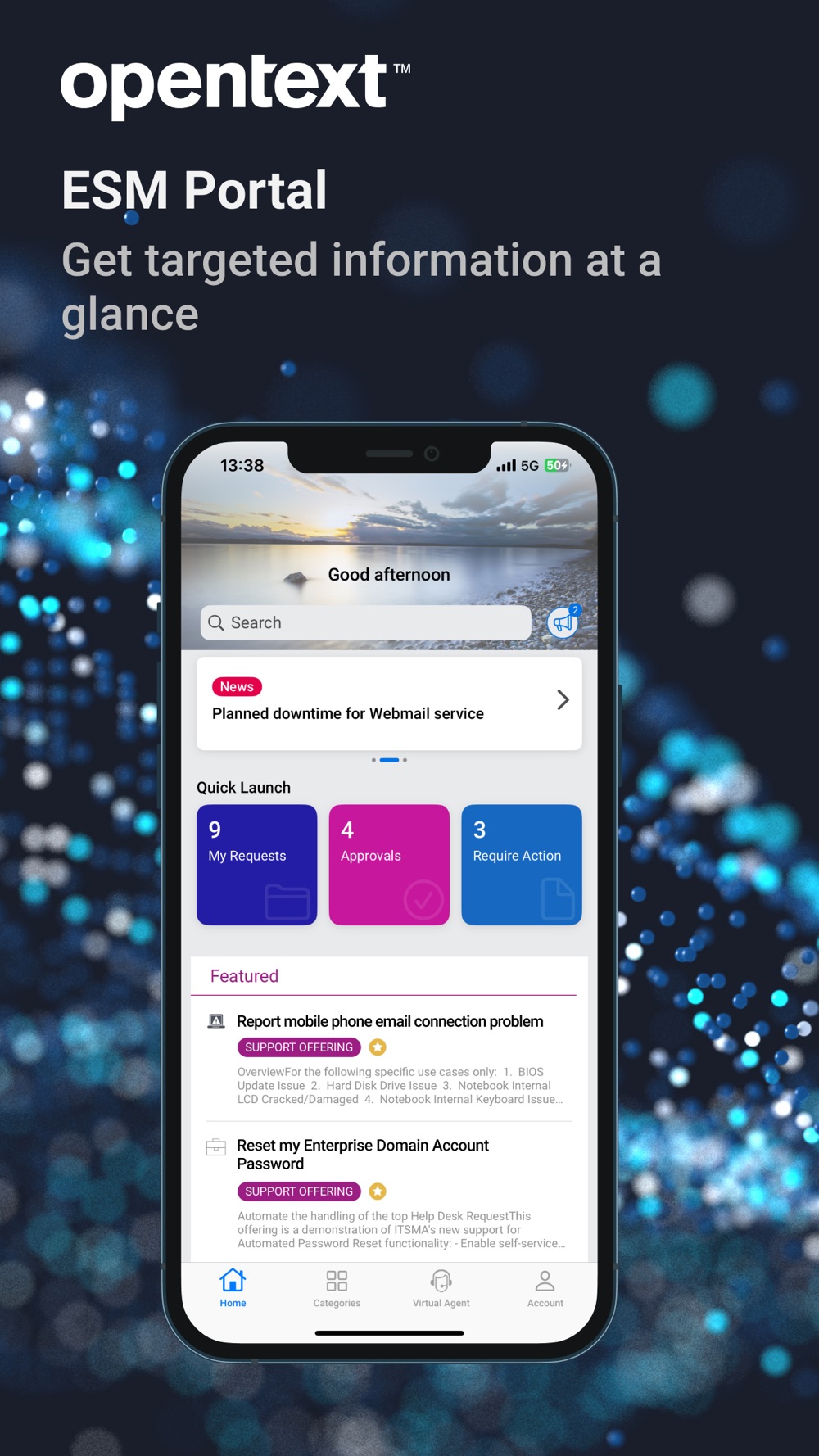 IMPORTANT: This software requires connectivity to the OpenText Service Management Automation Suite. You may activate the mobile app by scanning a QR code from your company’s Service Management Automation Service Portal web site. You may also contact your IT administrator for an activation URL.