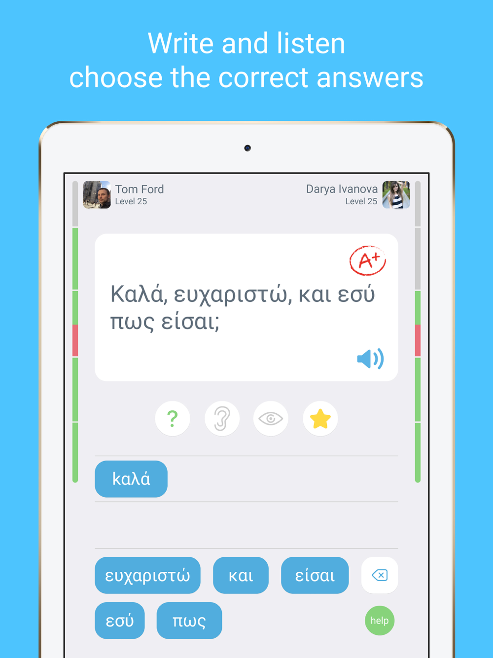 To succeed in studying the Greek language, you need to use the materials studied as efficiently as possible. LinGo has only the most necessary things to learn Greek language phrases and words as quickly as possible and reinforce the studied material. The more often you revise, the better you will know and be able learn to speak Greek fluently. If you already know and speak Greek well, you will have an even greater time guessing Greek words and memorising them with millions of users around the world.