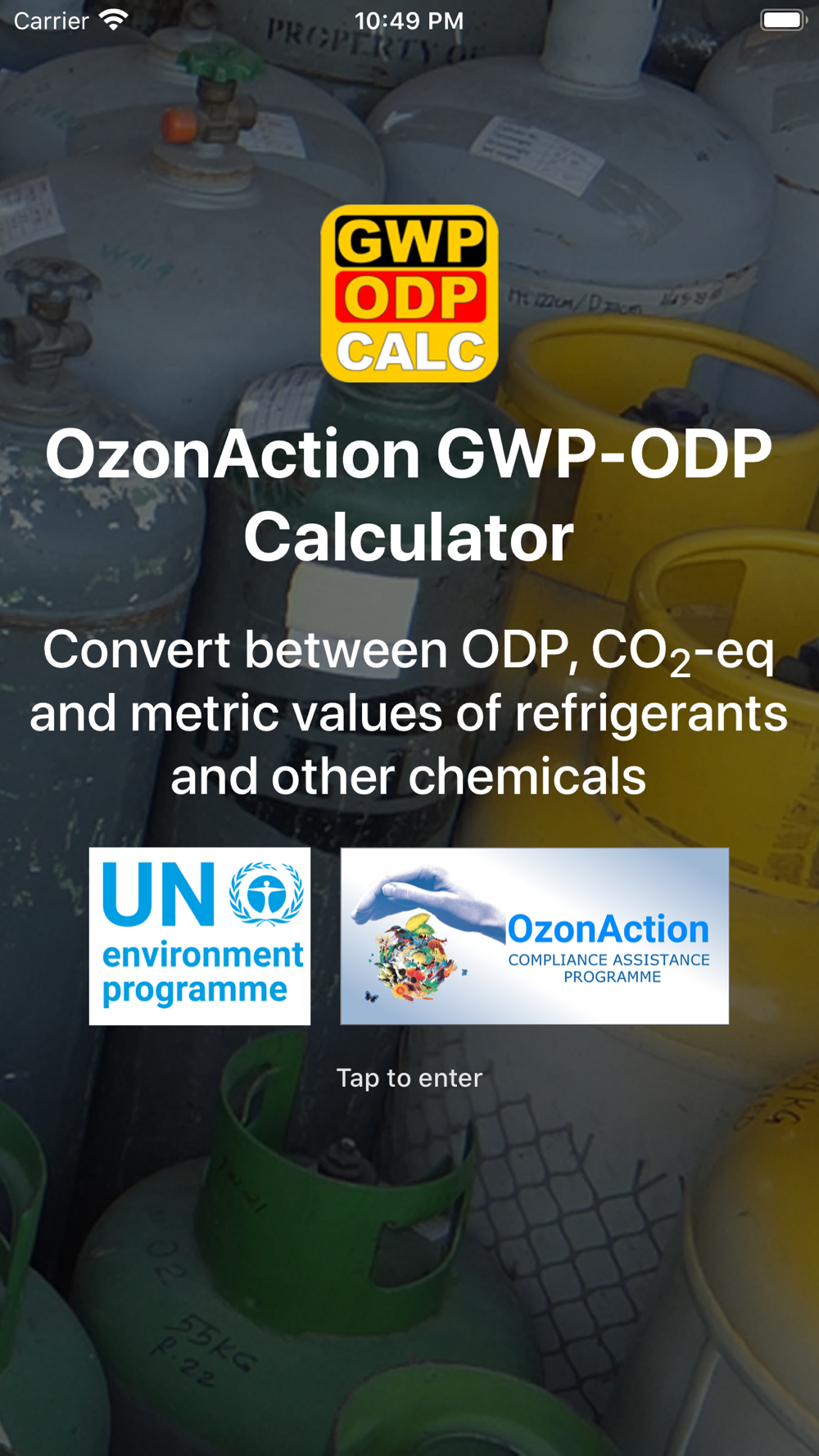 The UNEP OzonAction GWP-ODP Calculator app will help you to convert between values in metric tonnes, ODP tonnes and CO2-equivalent tonnes (or kg) of substances controlled by the Montreal Protocol and their alternatives. The updated application now includes a new Kigali Amendment mode. The app can now be used in two different modes: the regular "Actual Values" mode and the "Kigali Amendment" mode. In the Kigali Amendment mode, the global warming potential (GWP) values provided are those specified in the Kigali Amendment to the Montreal Protocol, i.e. GWP values are only assigned to controlled HFCs. In this mode the GWP values used to calculate the refrigerant blends/mixtures only include GWP contributions from components that are controlled HFCs. The user can effortlessly switch between modes. The OzonAction GWP-ODP Calculator uses standard ODP values and GWP values as specified in the text of the Montreal Protocol to make the conversions; other ozone depleting potential and global warming potential values from the recent reports from the Montreal Protocol technology and scientific expert panels as well as the Intergovernmental Panel on Climate Change (IPCC) are used when appropriate, with references to sources of all values used. The app includes new refrigerant mixtures (with ASHRAE approved refrigerant designations). The app can be viewed in English, French or Spanish.