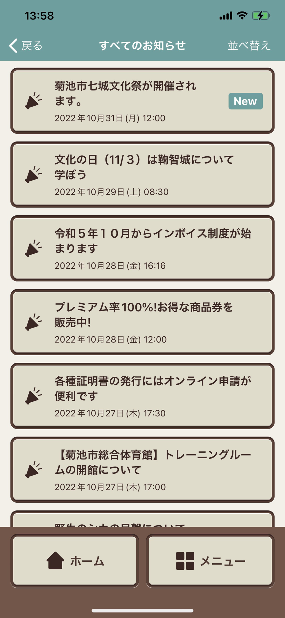 日常時や災害時に市からのお知らせが届きます。