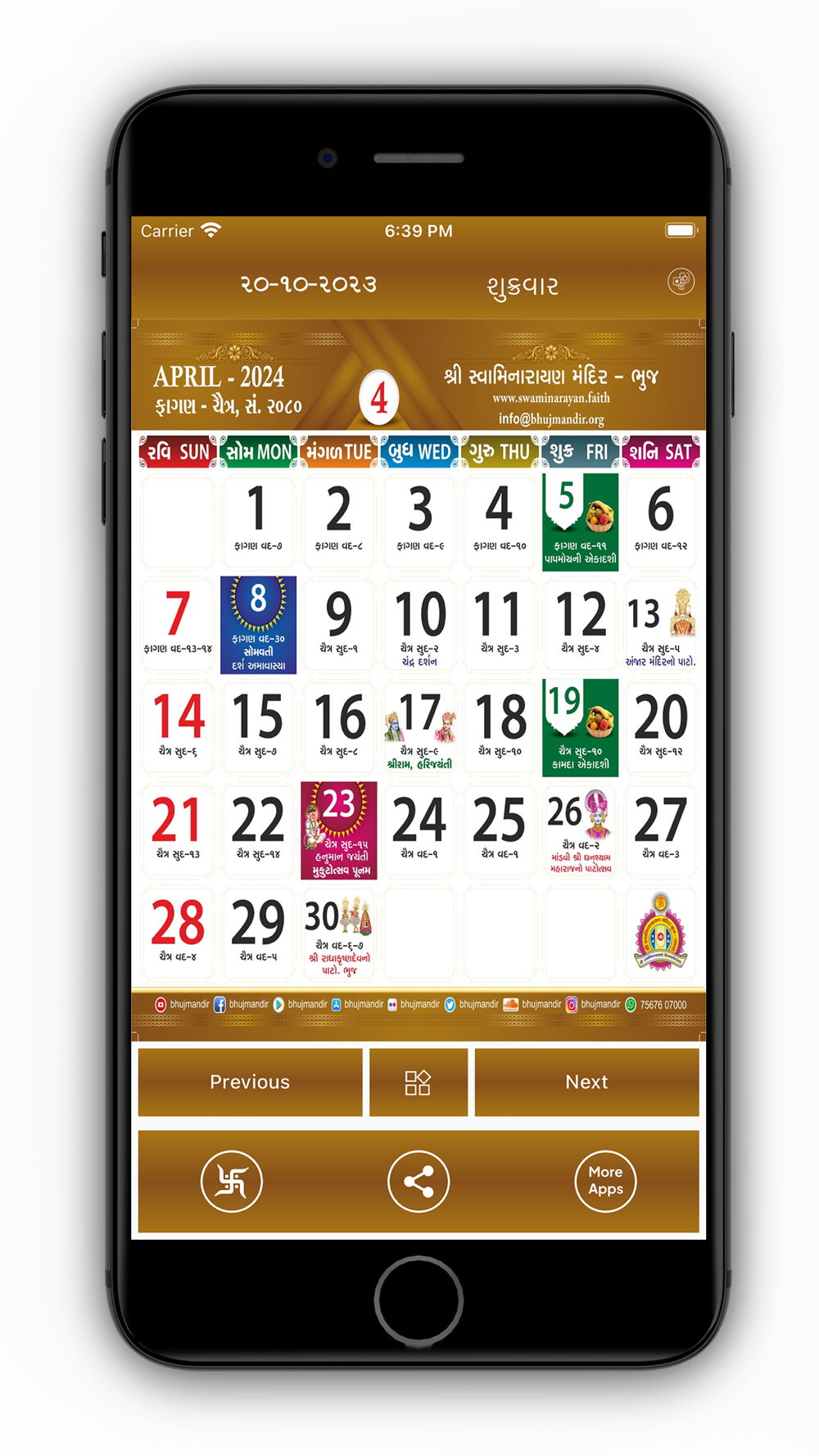 The calendar will help you find when the next Ekadashi is, what the Paksha (Sud,Vad) on a particular day is, when the next Poonam is (Full Moon) or the next Amavasya is and many more Hindu events in easy visual representations; due to images being used to represent key events, even a person who cannot read Gujarati is able to use the app.