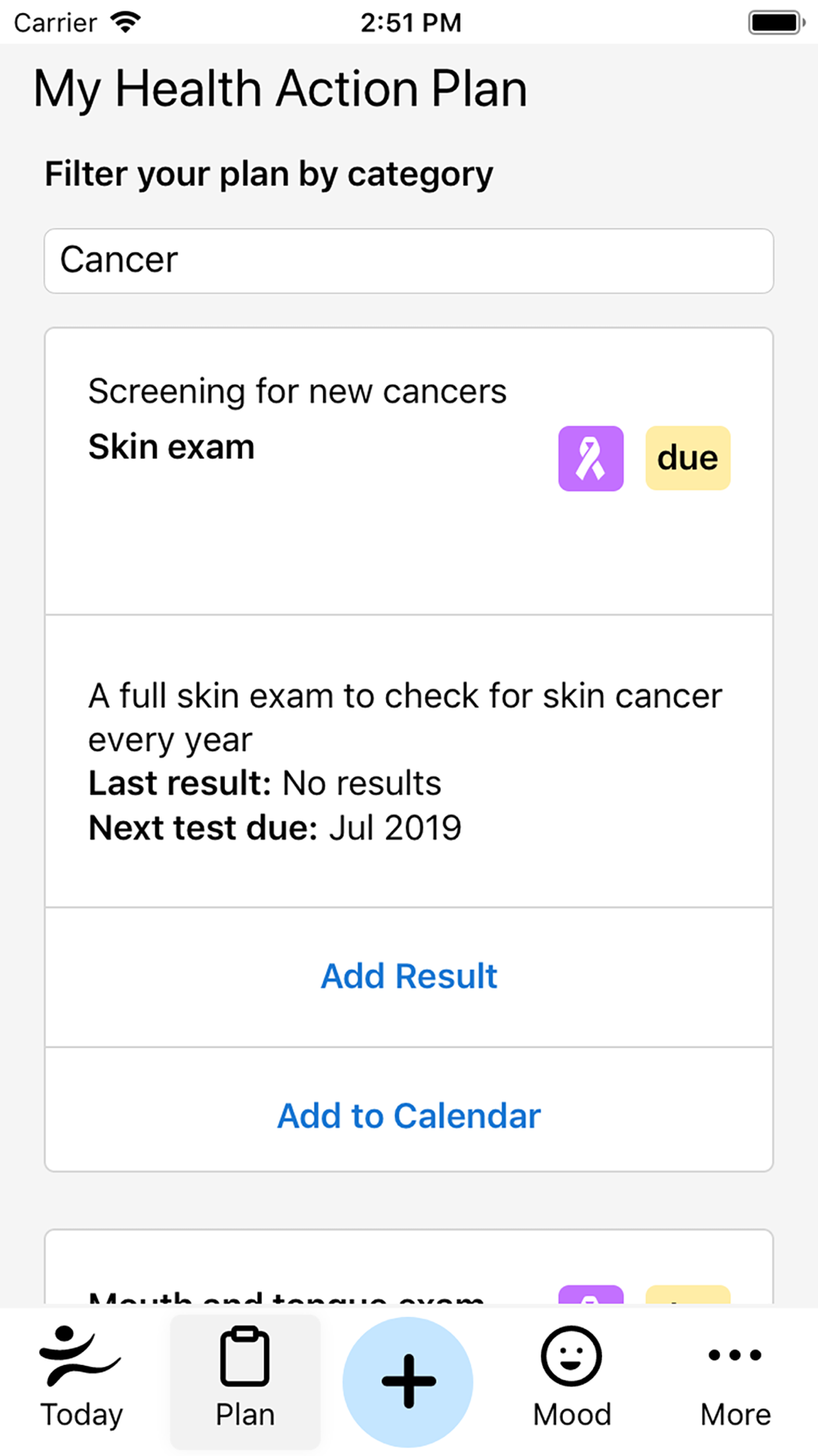 Download the app and use it with your health care team to determine the appropriate follow-up for you. Your survivorship care plan is built into the app to help you and your team.