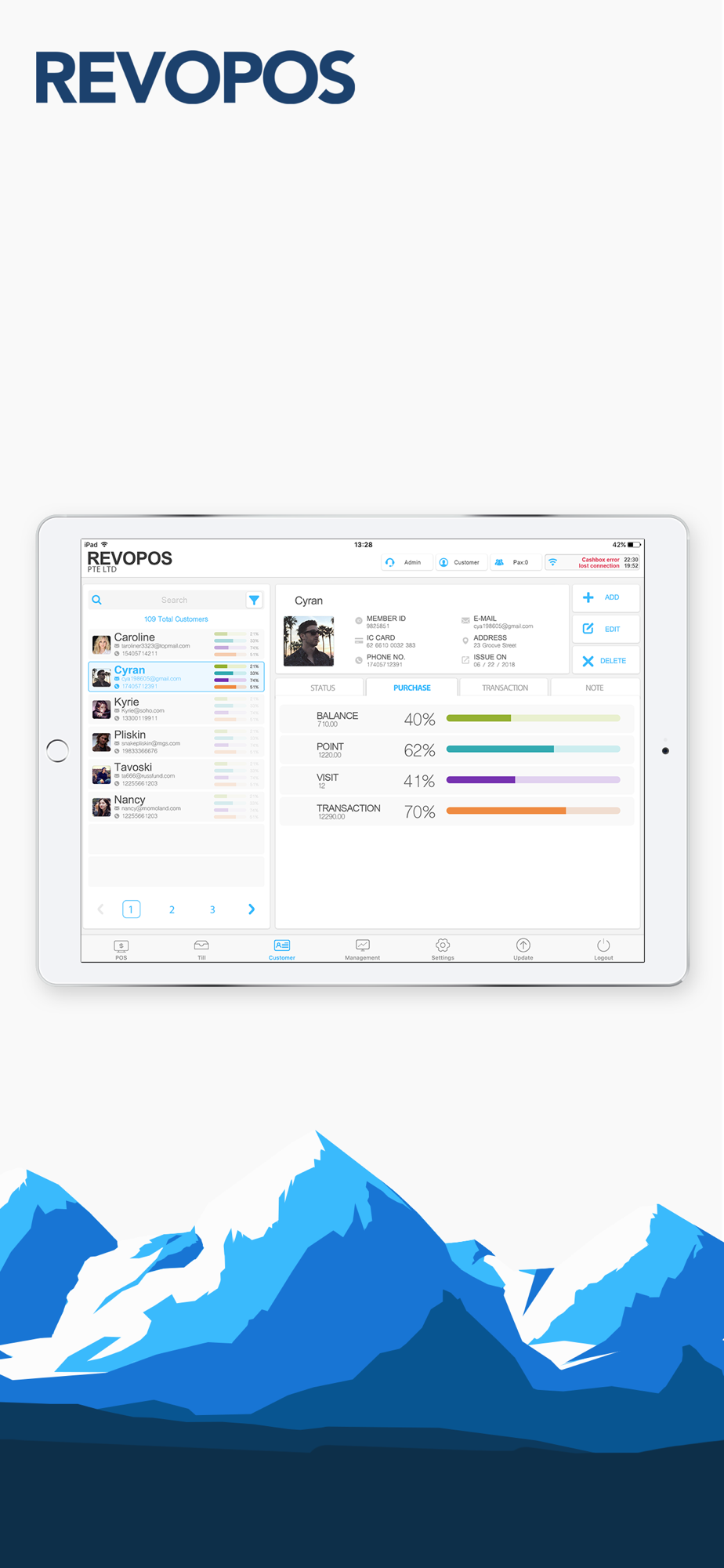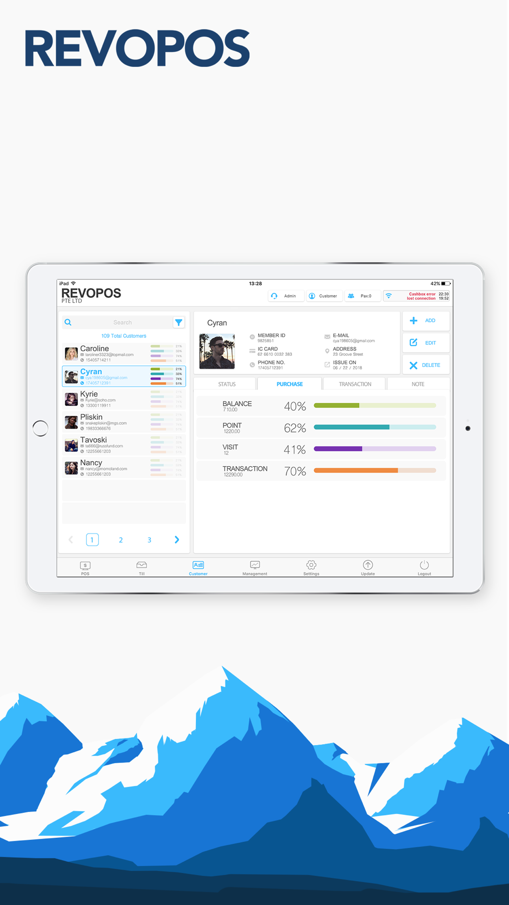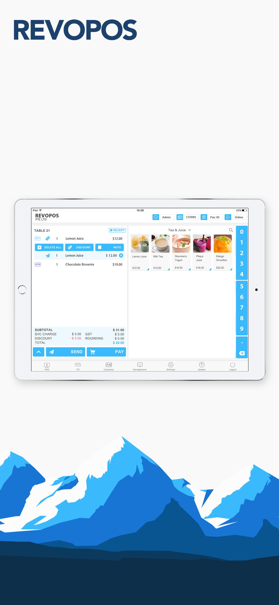 REVOPOS is a sleek and robust point of sales system with powerful and seamless integration on customer relationship system, loyalty program, customer retention program and more. Which is developed to retain your customer and improve sales.