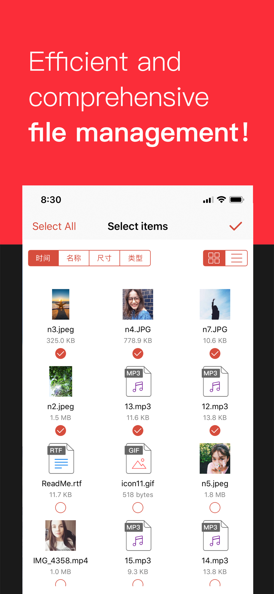 • Built-in Reader document viewer for DOC, TXT, PPT, XLS, RTF, PDF,KEY,NUMBERS,PAGES or any other documents.