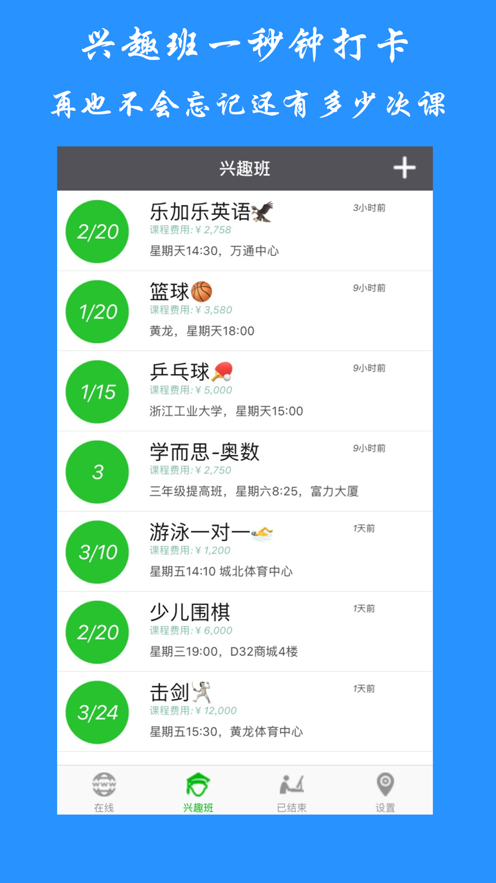 上课次数记录:已经上了多少堂课,还剩多少堂课没上。