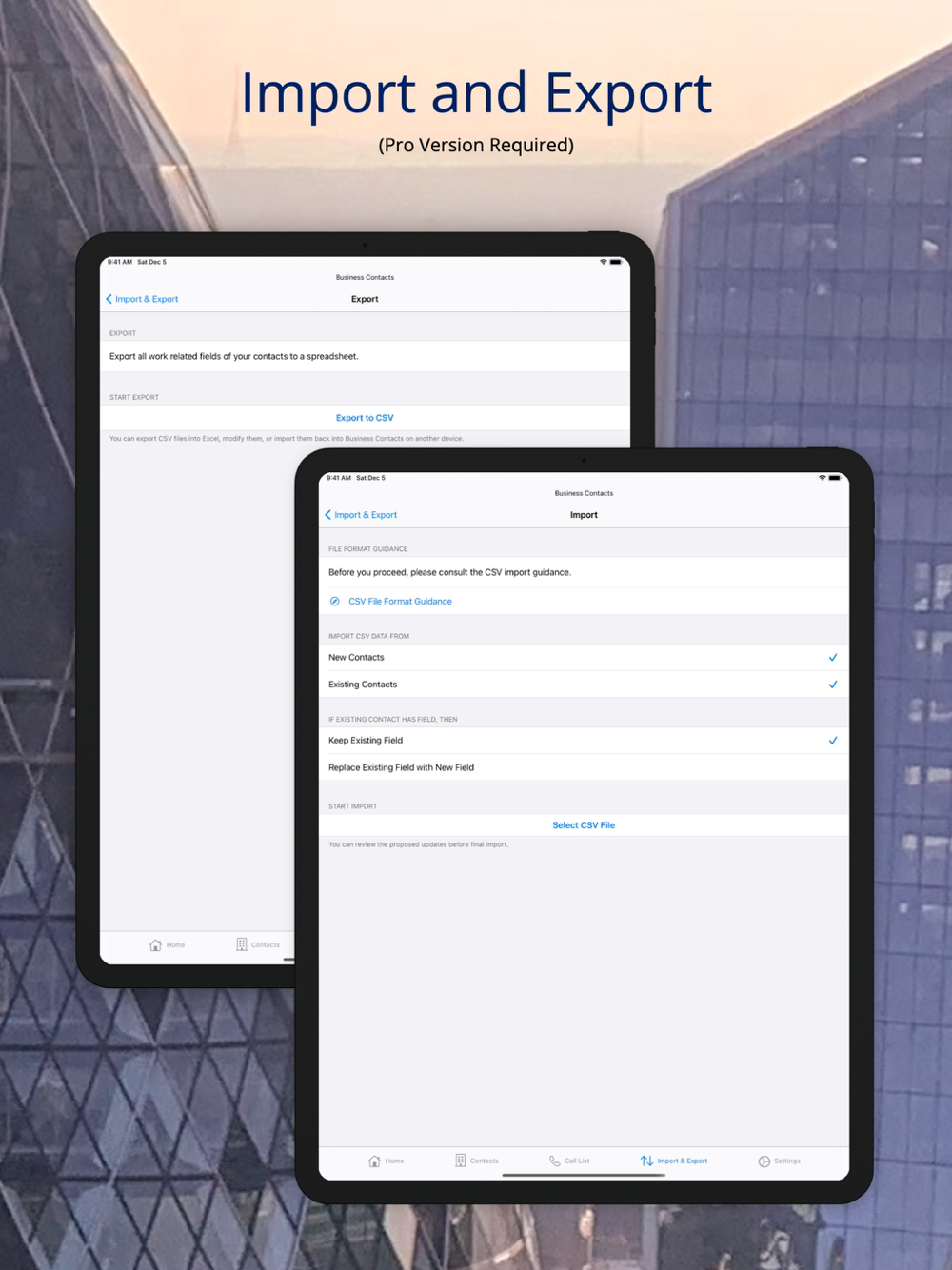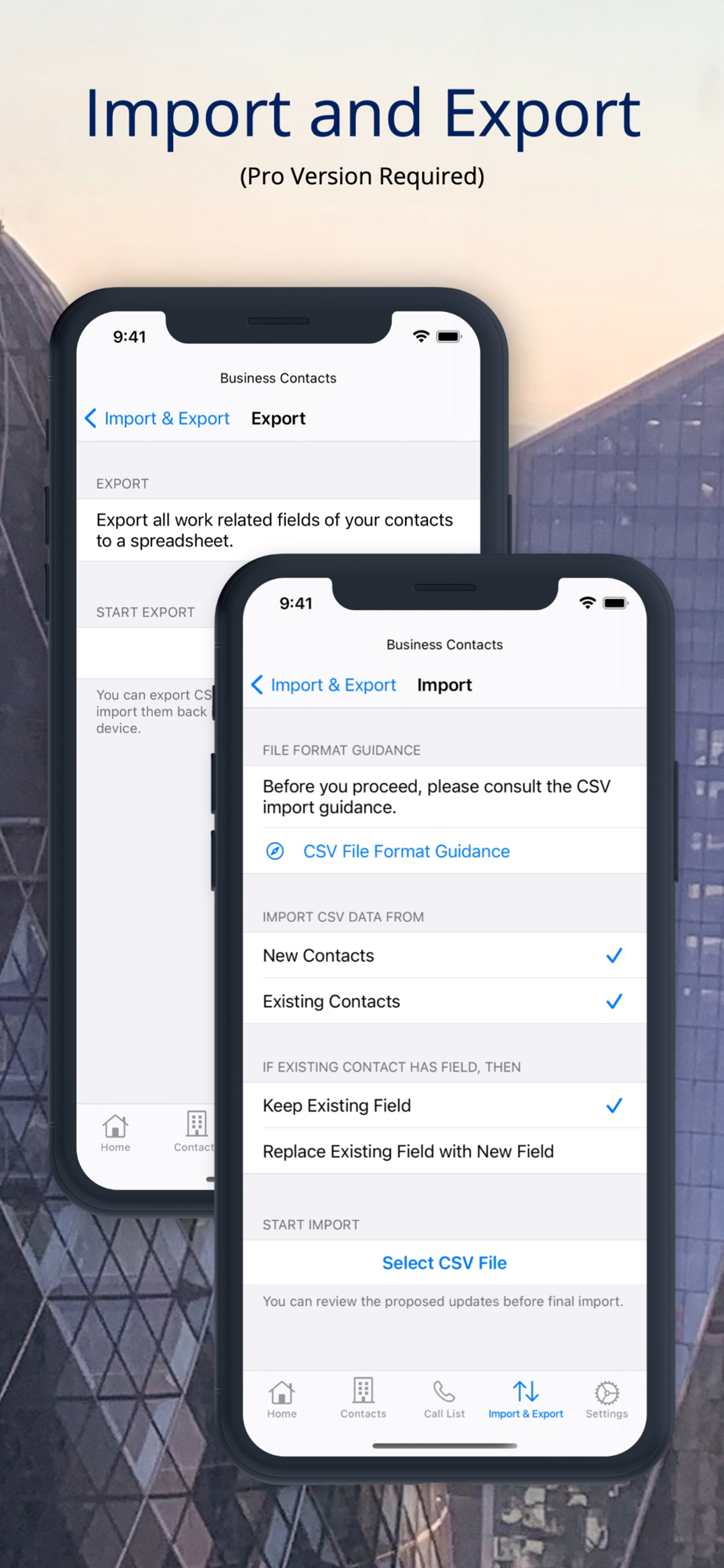 You can use the app for free using this free version and upgrade to the Pro version using an in-app purchase. The Pro version offers a contact import feature for the business card scanner, unlimited contacts on the call list, and upgraded import and export functionality.