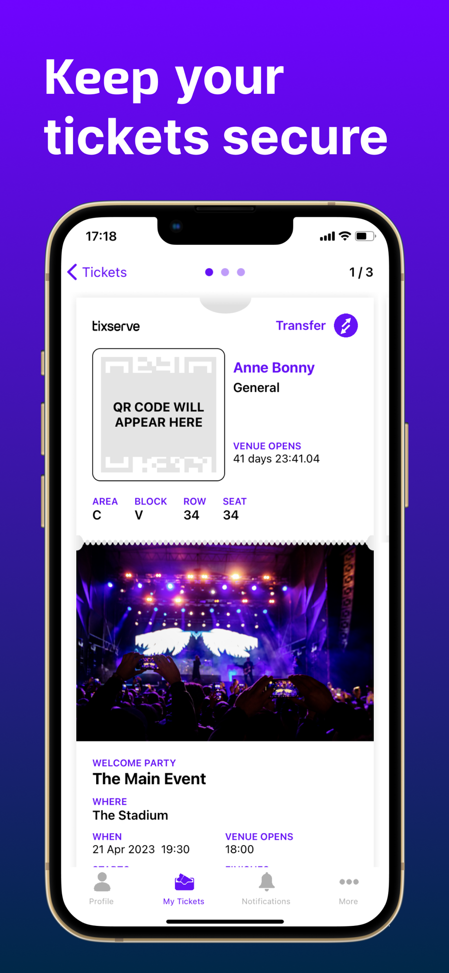 Your tickets are delivered straight into the Tixserve app - meaning there’s no need to print tickets or wait for them to arrive in the post.