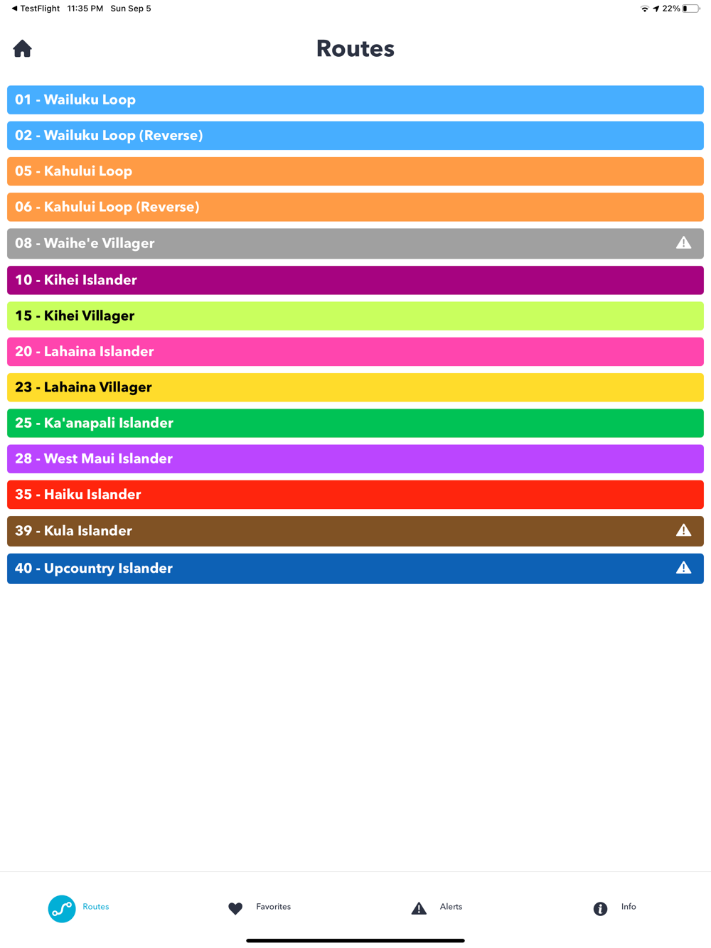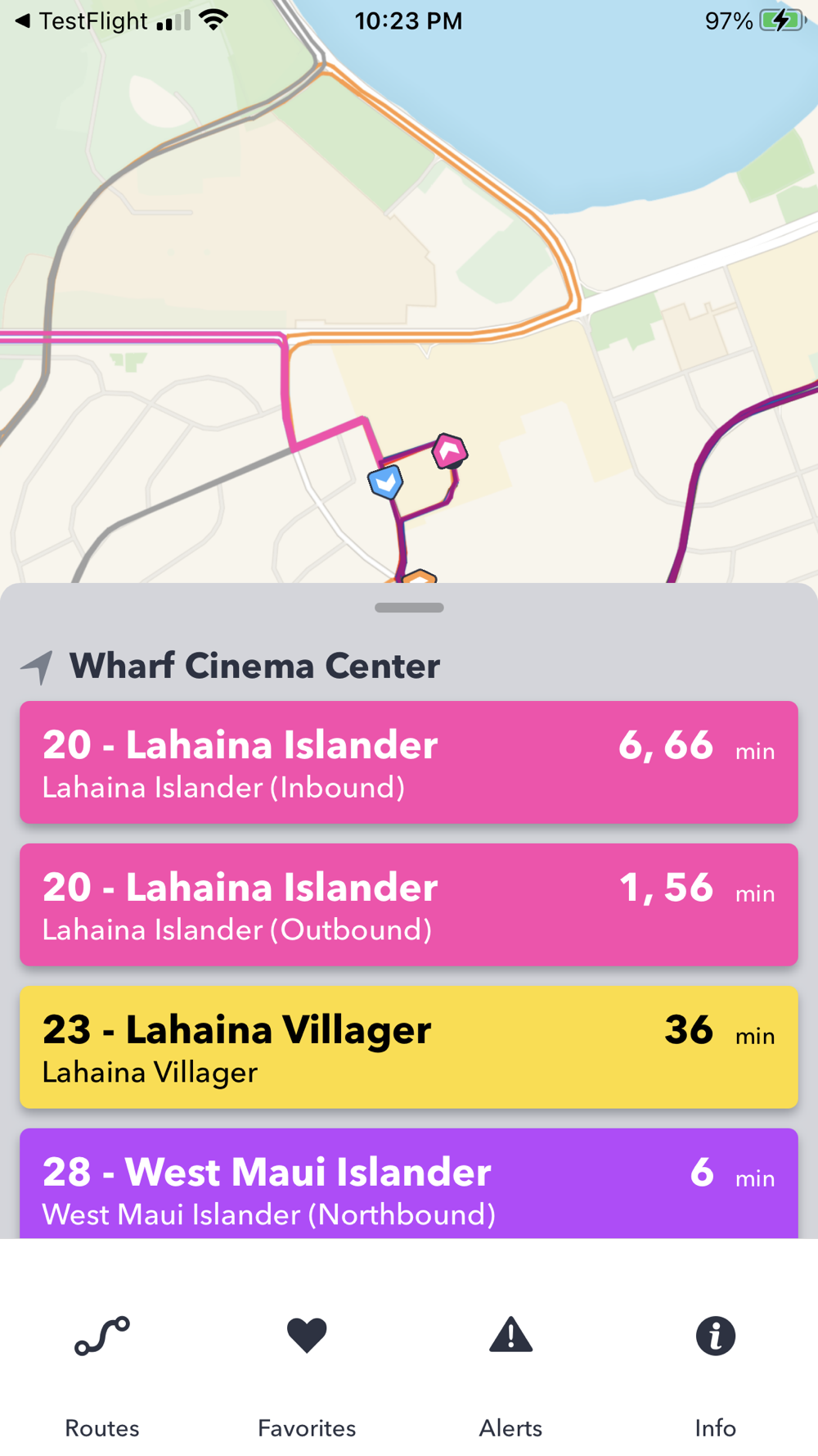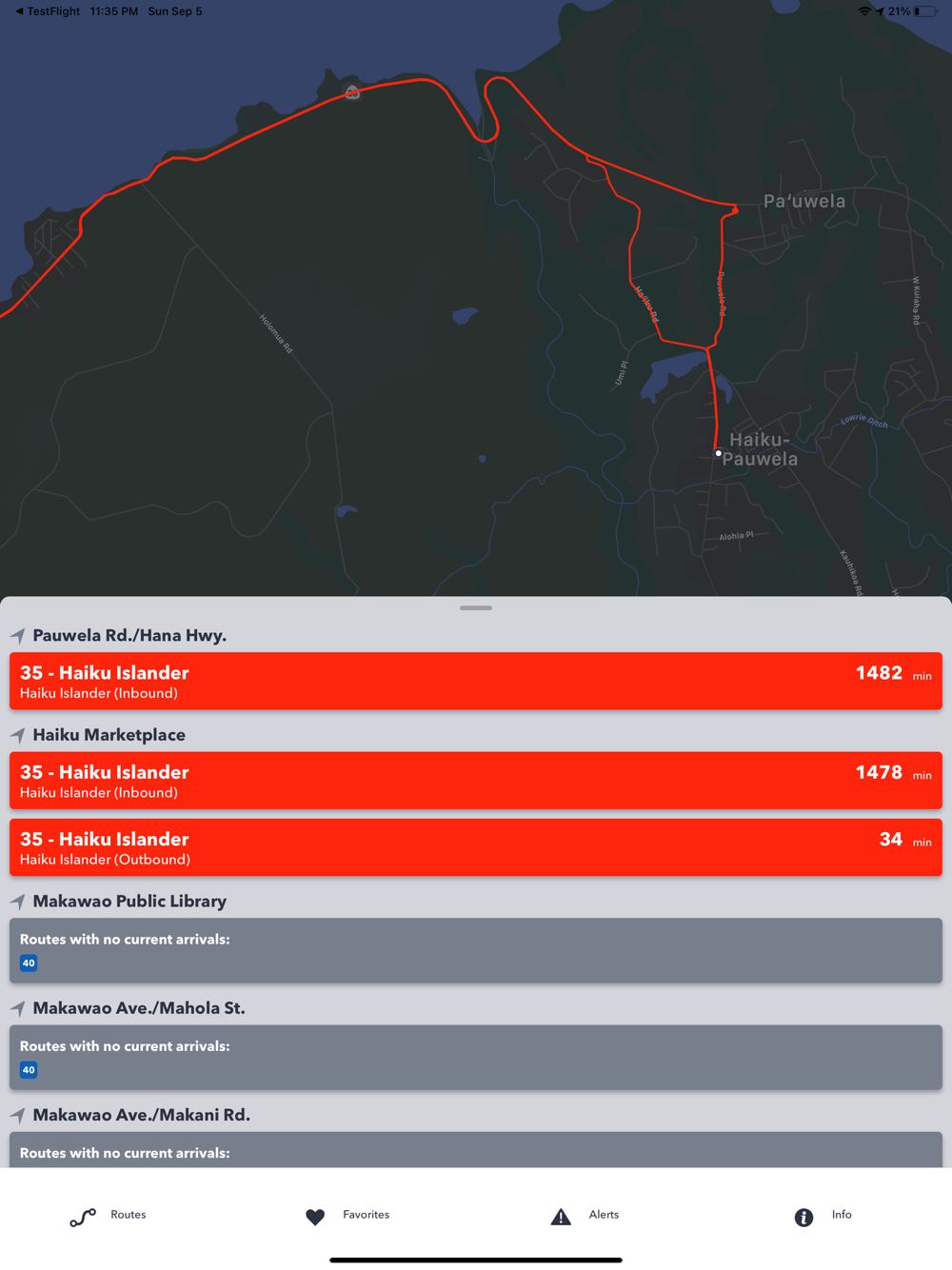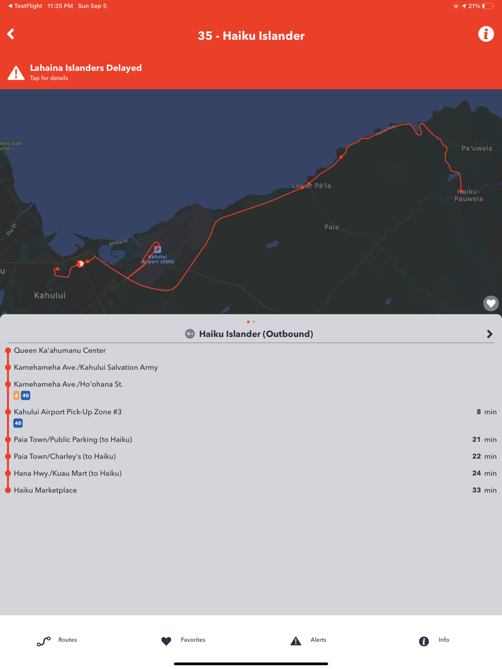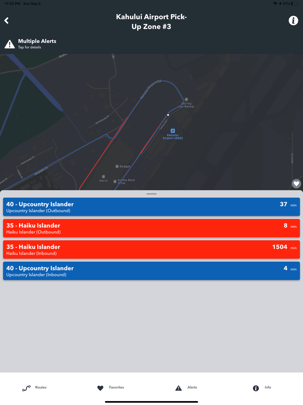 The official Maui Bus app provides real-time arrival information for the Maui Bus public transit system buses. Use the app to mark favorite stops and routes, set reminders, get alerts, plan your trip, provide feedback and access general information about Maui Bus. Best of all, you can track your bus in real-time on the live map to see its exact location and receive estimated arrival times at your bus stop.