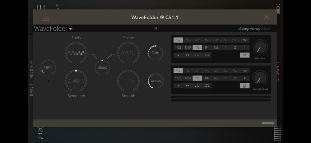 WaveFolder lets you set the folding thresholds and modulate the folding amount and symmetry with tempo based or free running modulators. WaveFolder also includes a wave shaper to add even more interest.