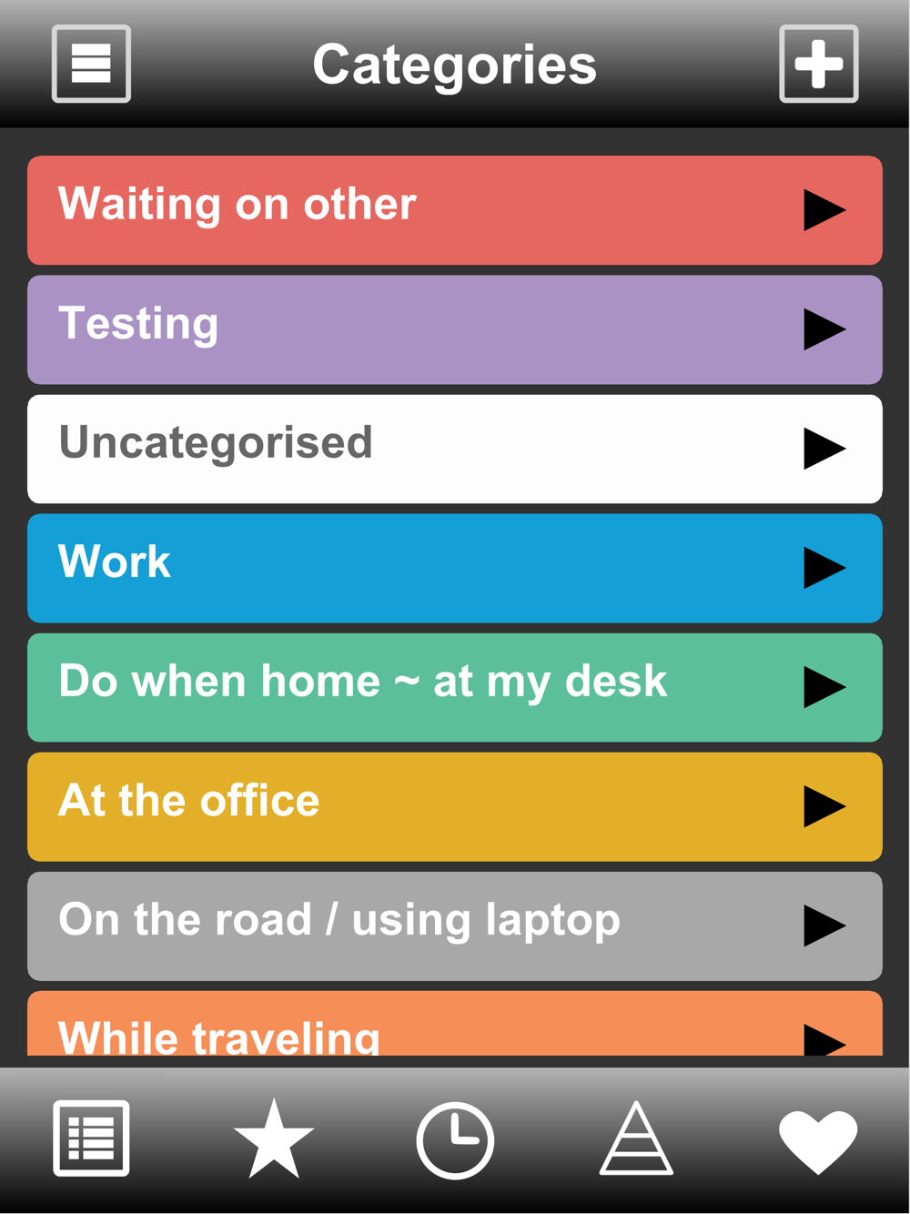 I made this app because none of the current apps did what I wanted. Very quick task entry, press one button to see the most urgent ones, another to see the most important. And if you have only a short time available, or want to do something fun, buttons for that. Then there's my magic formula which tells you what to do first, based on urgency importance size and fun factor!