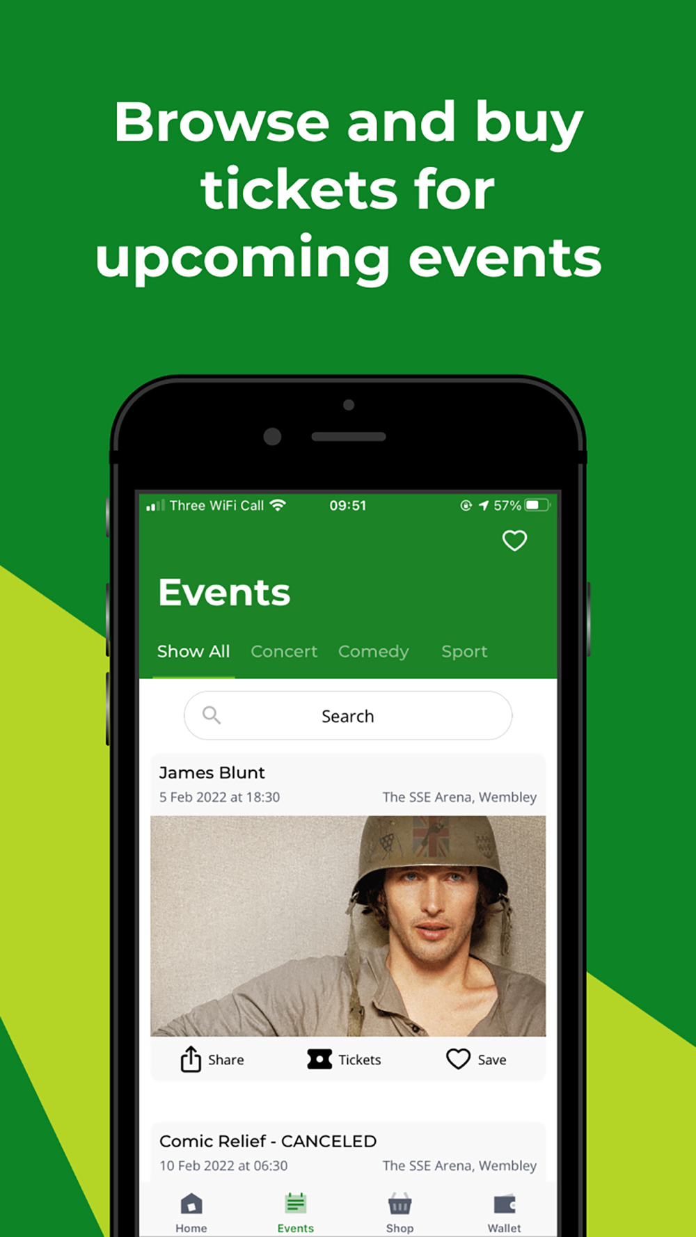 Our app allows you to have your ticket on your phone, pre-order your food, drinks & merch and take advantage of special offers, personalised to you.