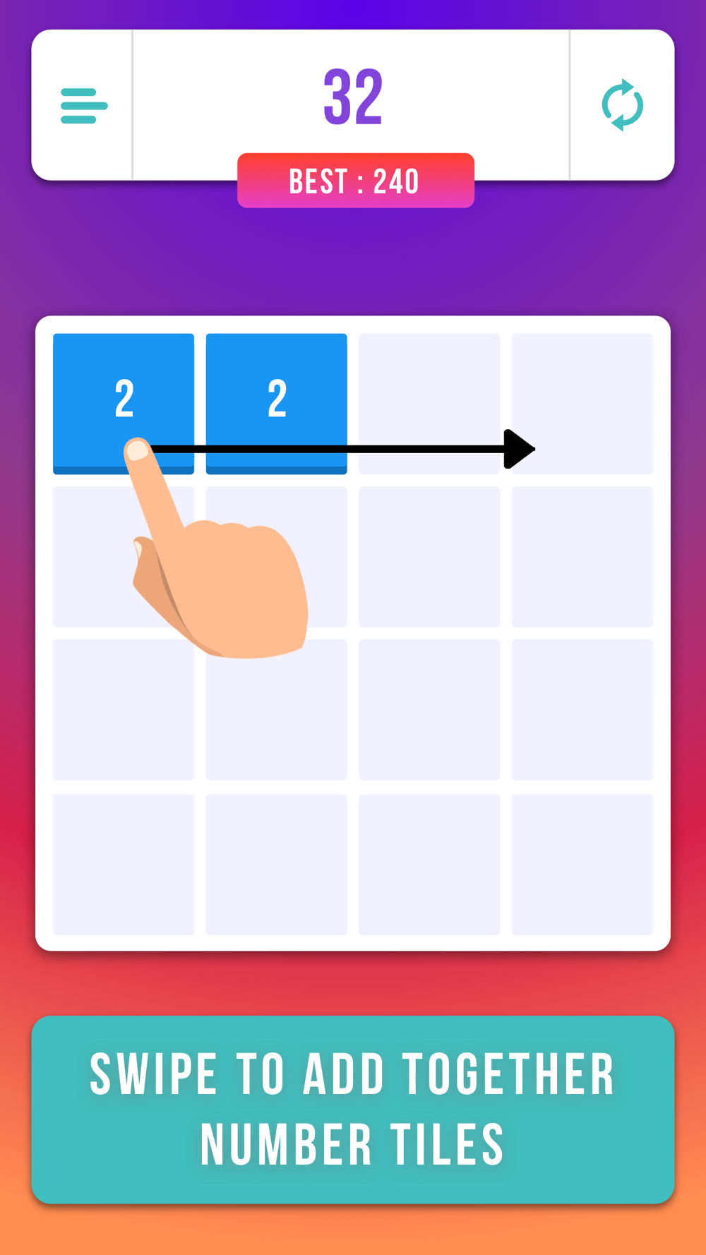 - Slide tiles together to make 2048