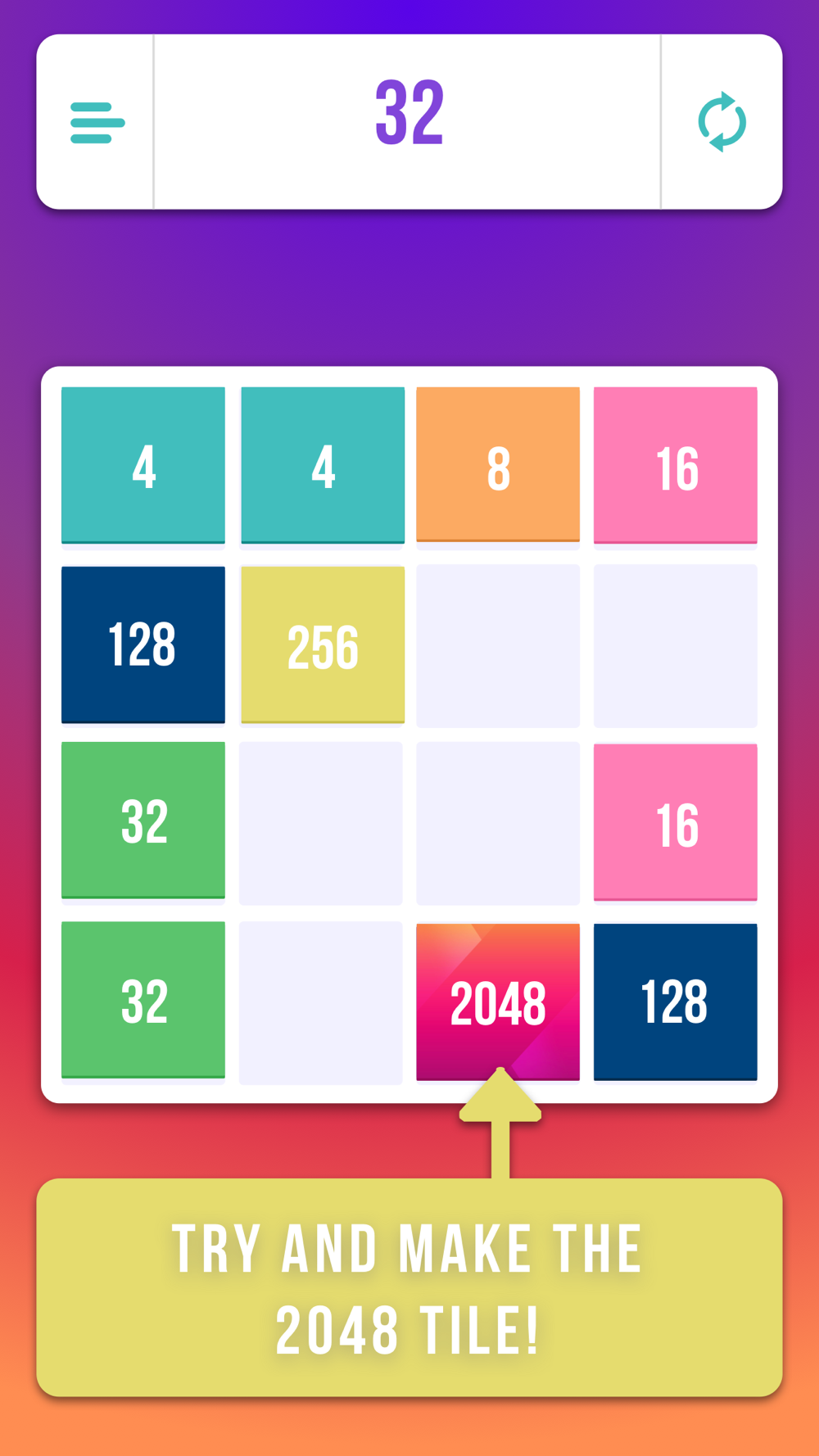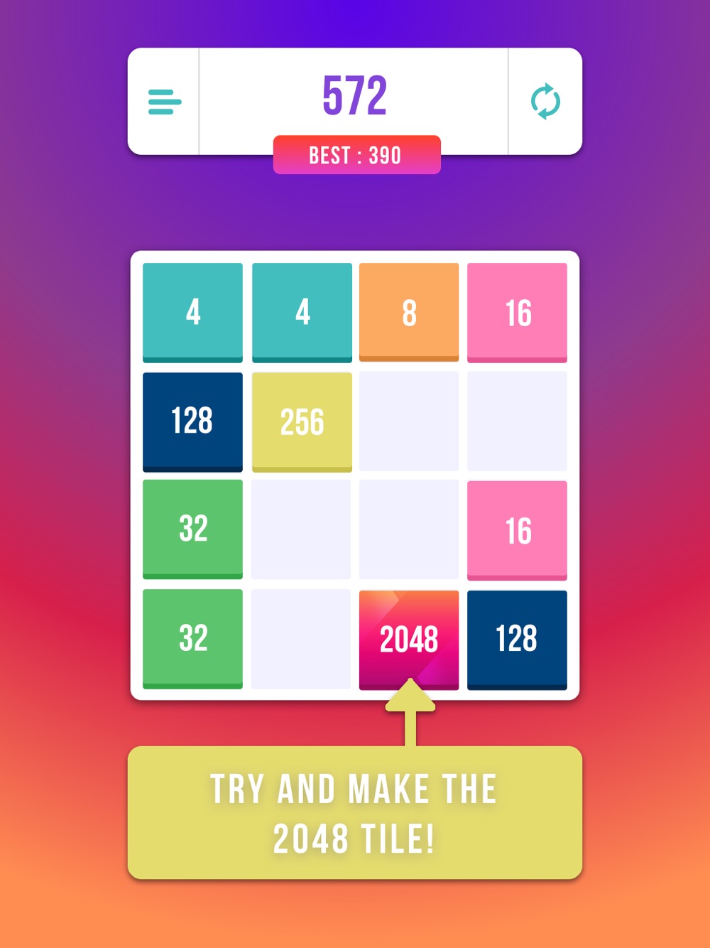 Build your score in 2048 and compete against your friends.