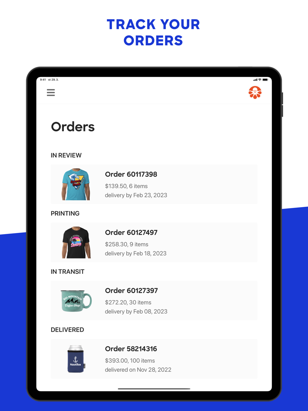Custom Ink app allows you to track your orders, check their status and be notified about any updates.