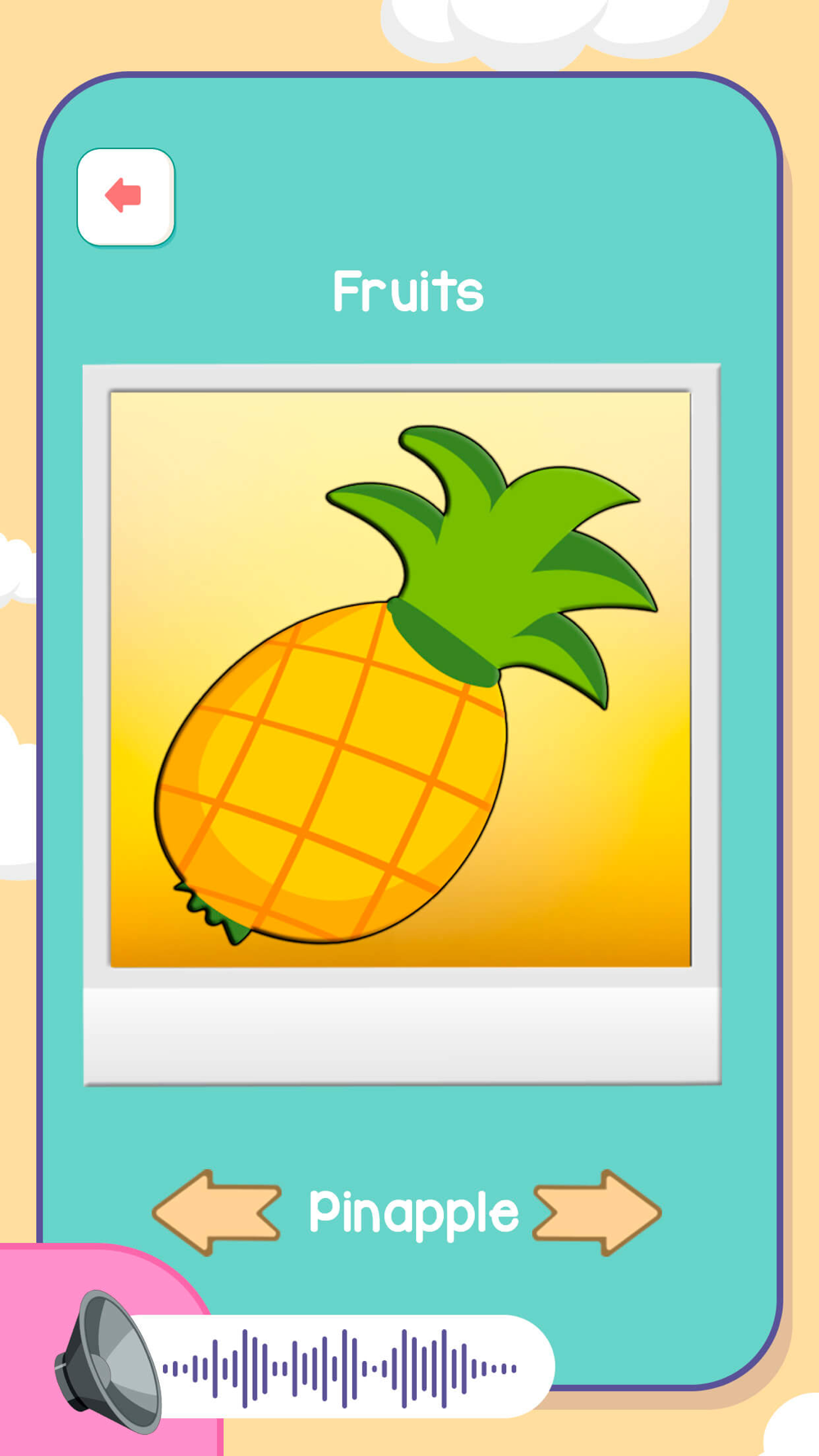 The app has different subjects from the basic (ABC, numbers, fruit) to interesting discovery (animal, clothes, colors)