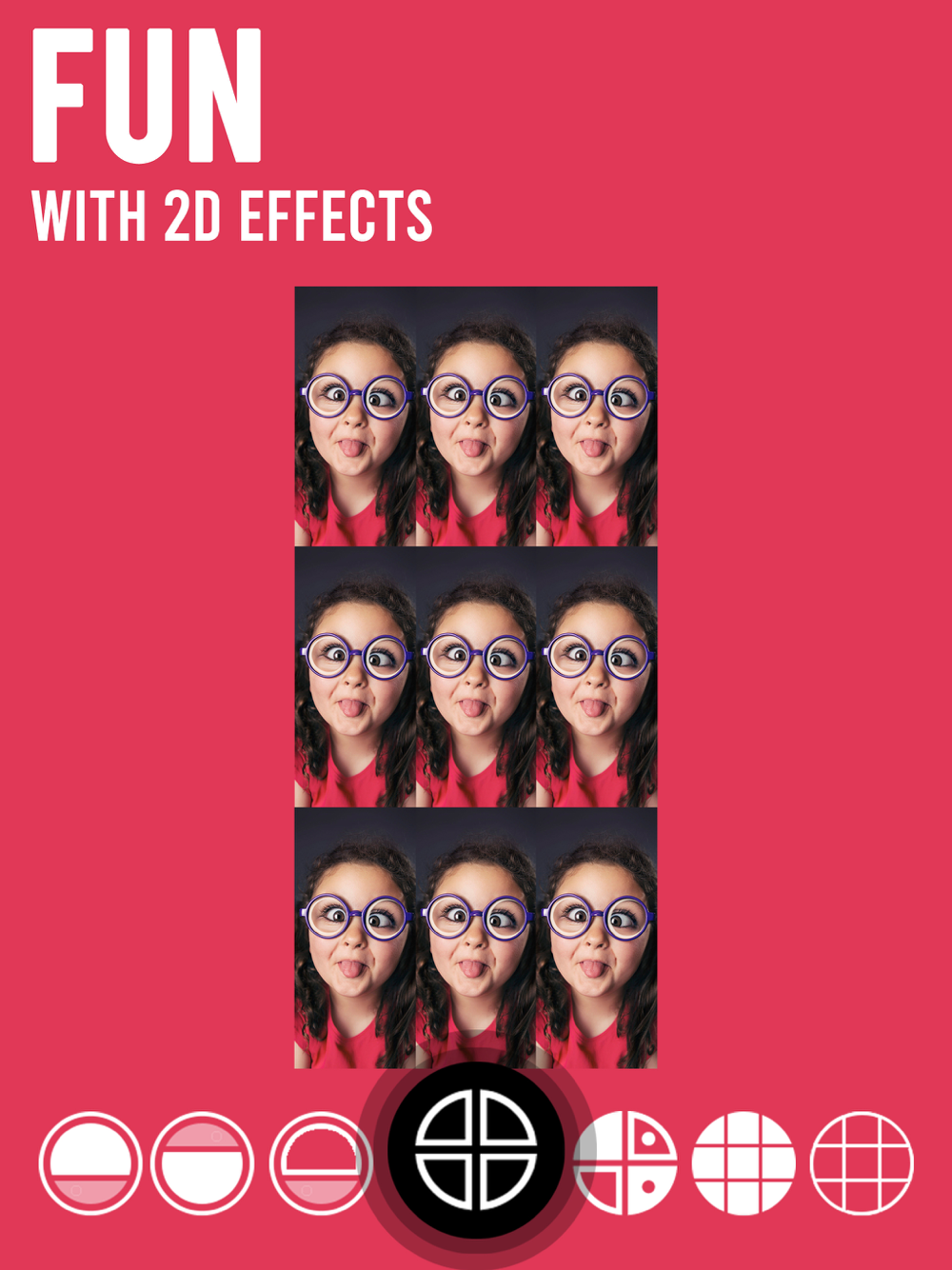 Choose or take a photo & convert it into a beautiful photo mirror collage.