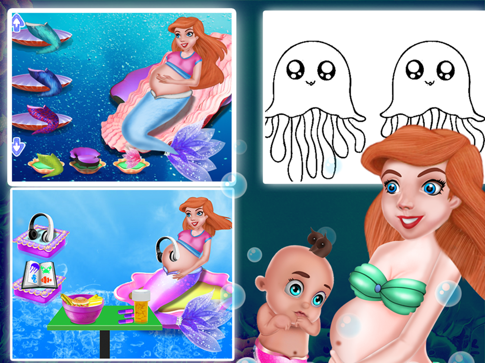 Mermaid princess pregnancy check up with Newborn Baby Care Game for pretty girls.