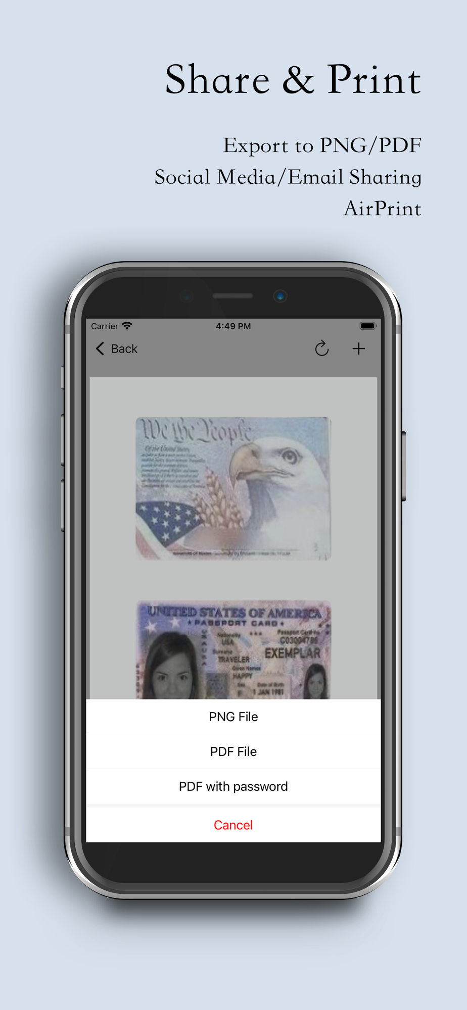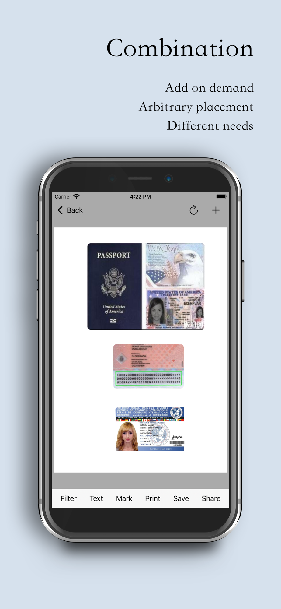 "Finally I found this kind of software that directly turns the ID card in the photo into the A4 printing function. In the future, I don’t need to print the ID card and other documents in the typing company. I hope that the developer can add a graduation certificate, marriage certificate, practice certificate, etc. Credential function."