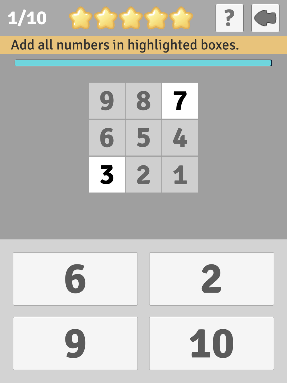 Trong ứng dụng có rất nhiều bài kiểm tra để lựa chọn. Trong bài kiểm tra, sẽ có một mức độ từ đơn giản và khó khăn. Các bài kiểm tra là khác nhau và có hẹn giờ là nhiều thử thách. Người chơi sử dụng một bộ não để chơi các ứng dụng.