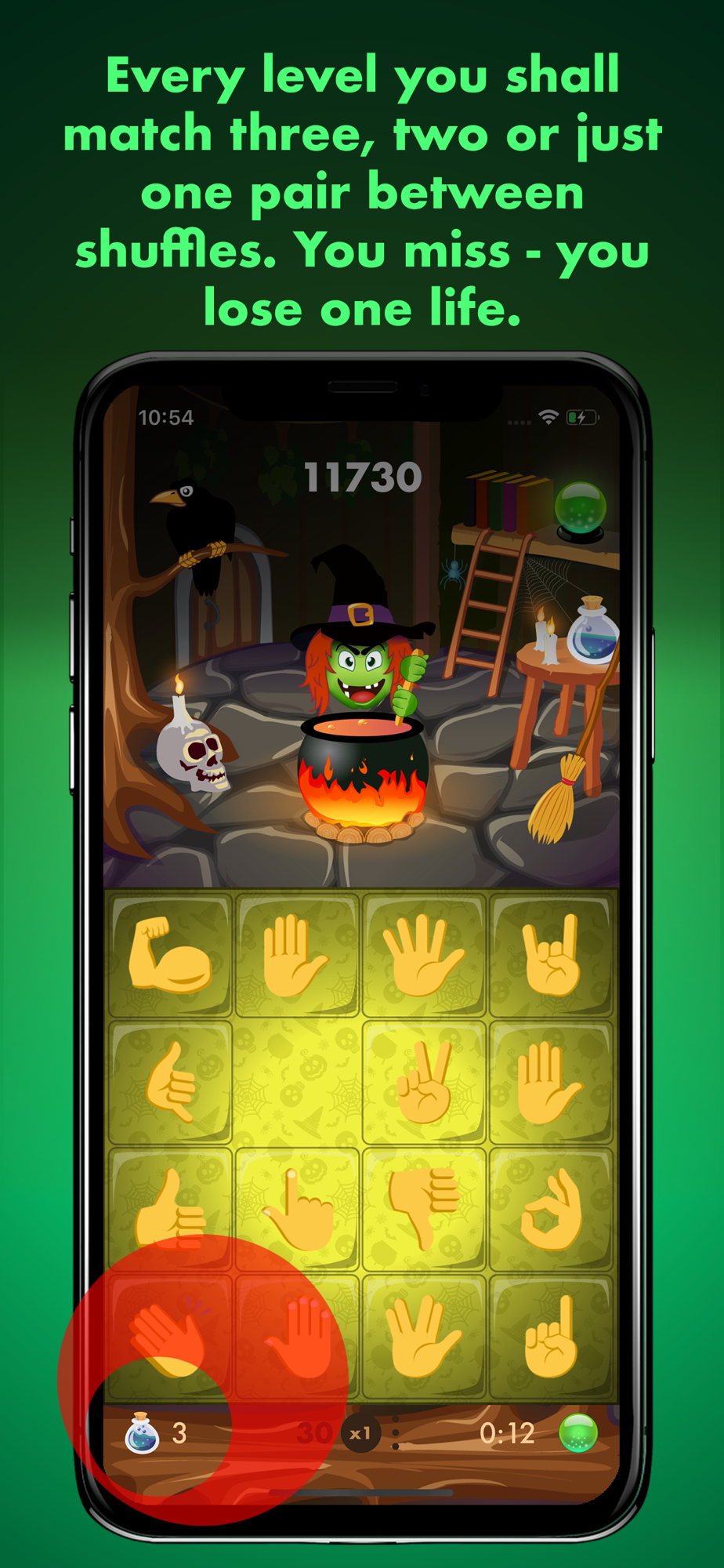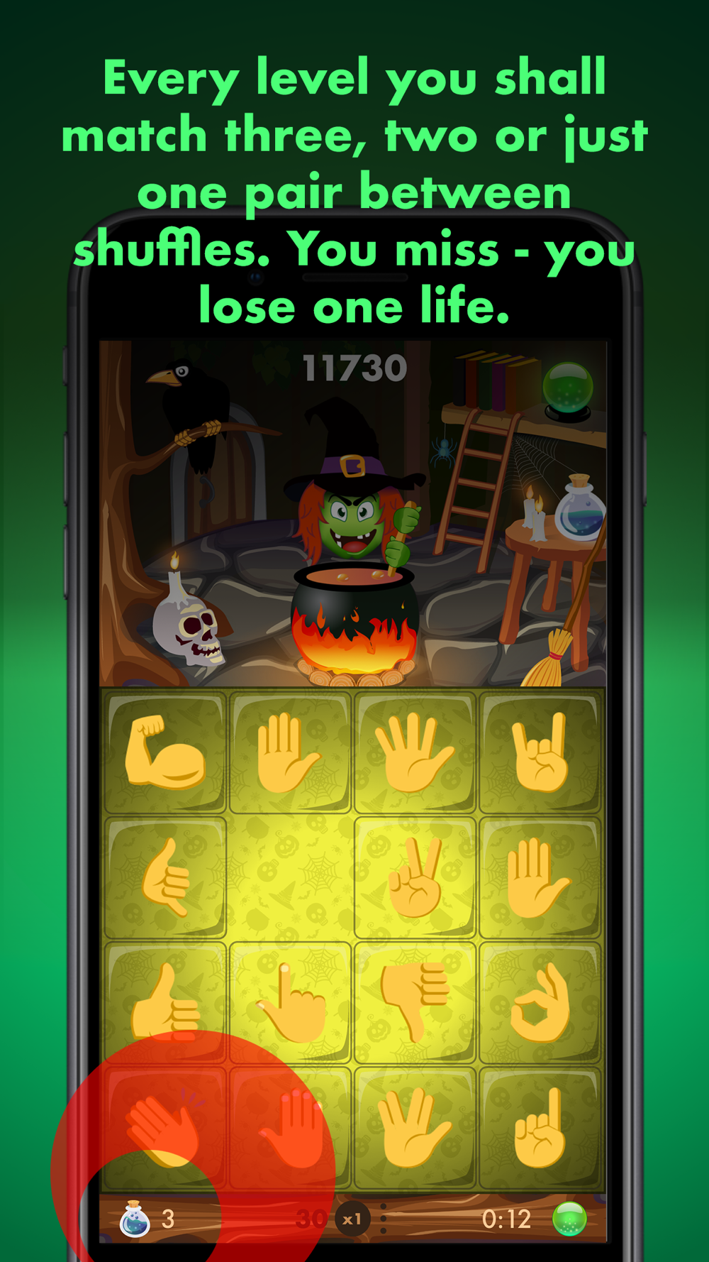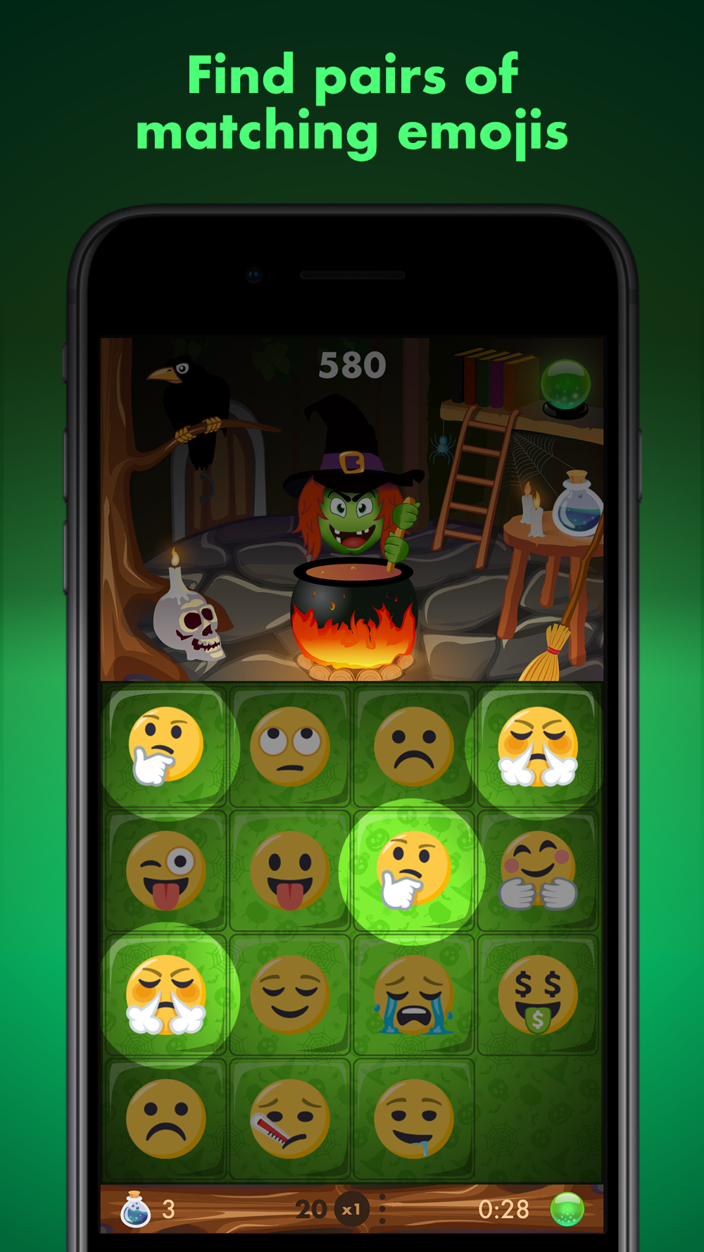 It is not that easy to find in the kaleidoscope of emojis three, two or even one pair of matching emojis, move them towards each other and shift one upon another to get another couple on their places. And all of that for the time, which a witch allocates. Yep! You have to fight the witch, who is literally shuffling all you movements strategy back to the chaos. Her scoffing laugh, especially for the moment when you have almost done that, will stick in you head for a pretty long time!