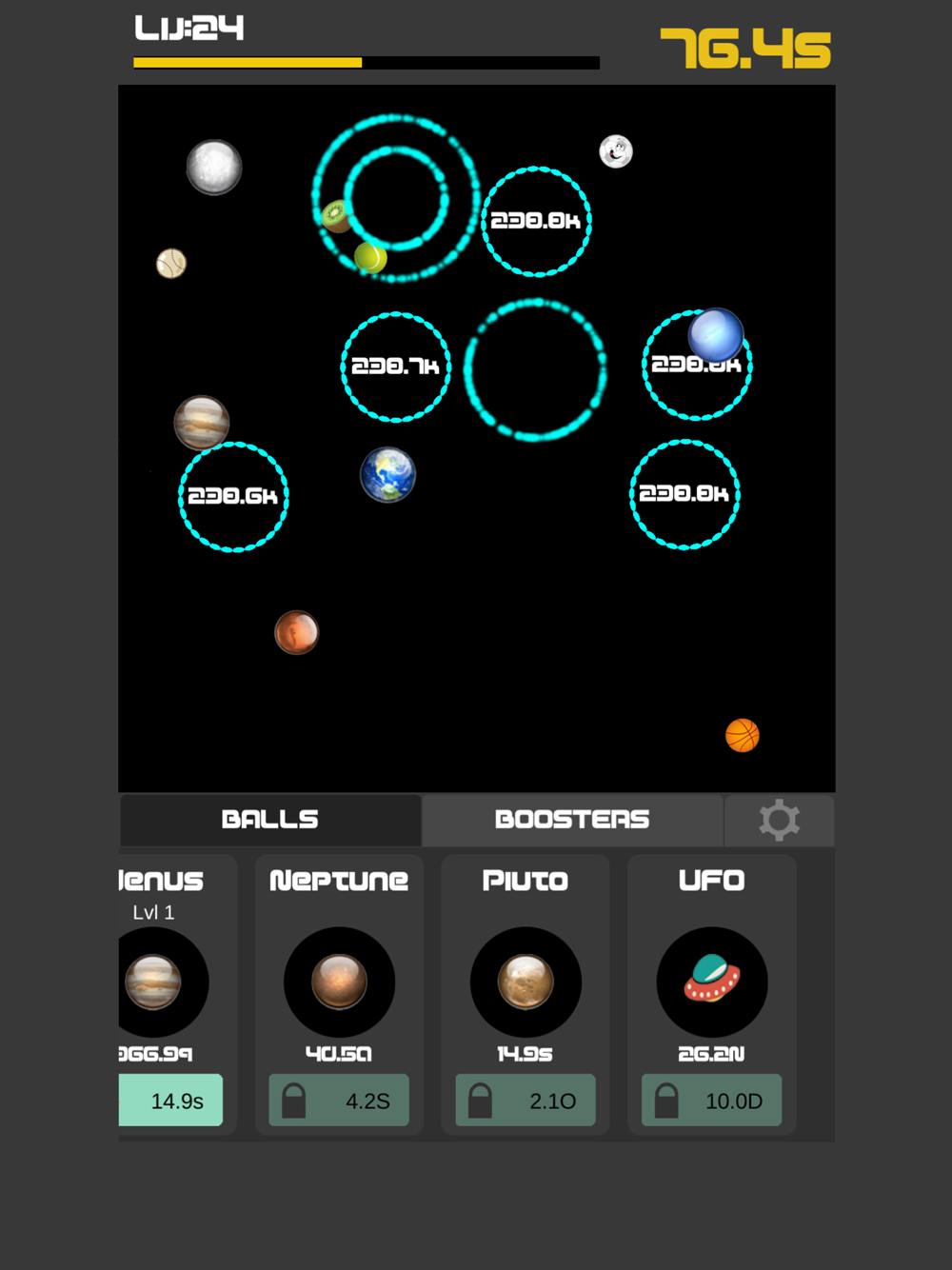 -Use boosts to earn more and upgrade idle ball faster.