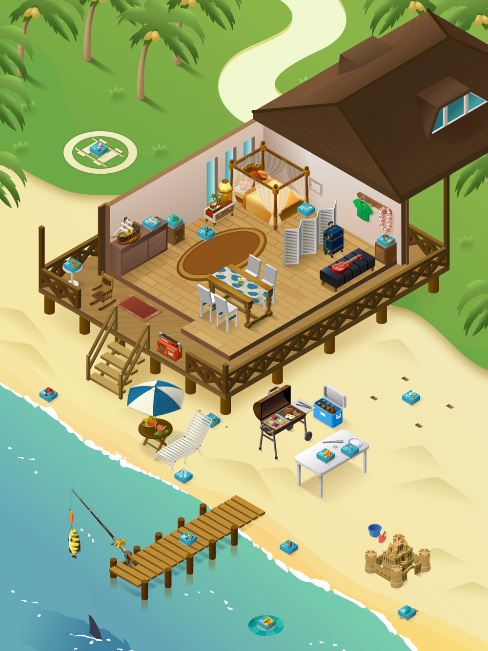 高級リゾートで家具や食べ物、乗り物のプラモデルを