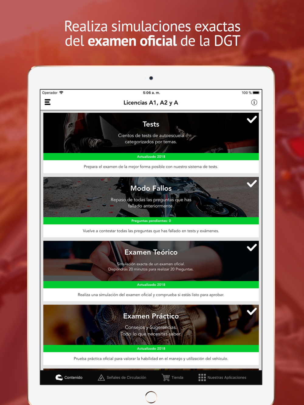 Con "Licencia de Motos" prepararás los exámenes teóricos y prácticos para la obtención de las licencias de conducción tipo A1, A2 y A de España.