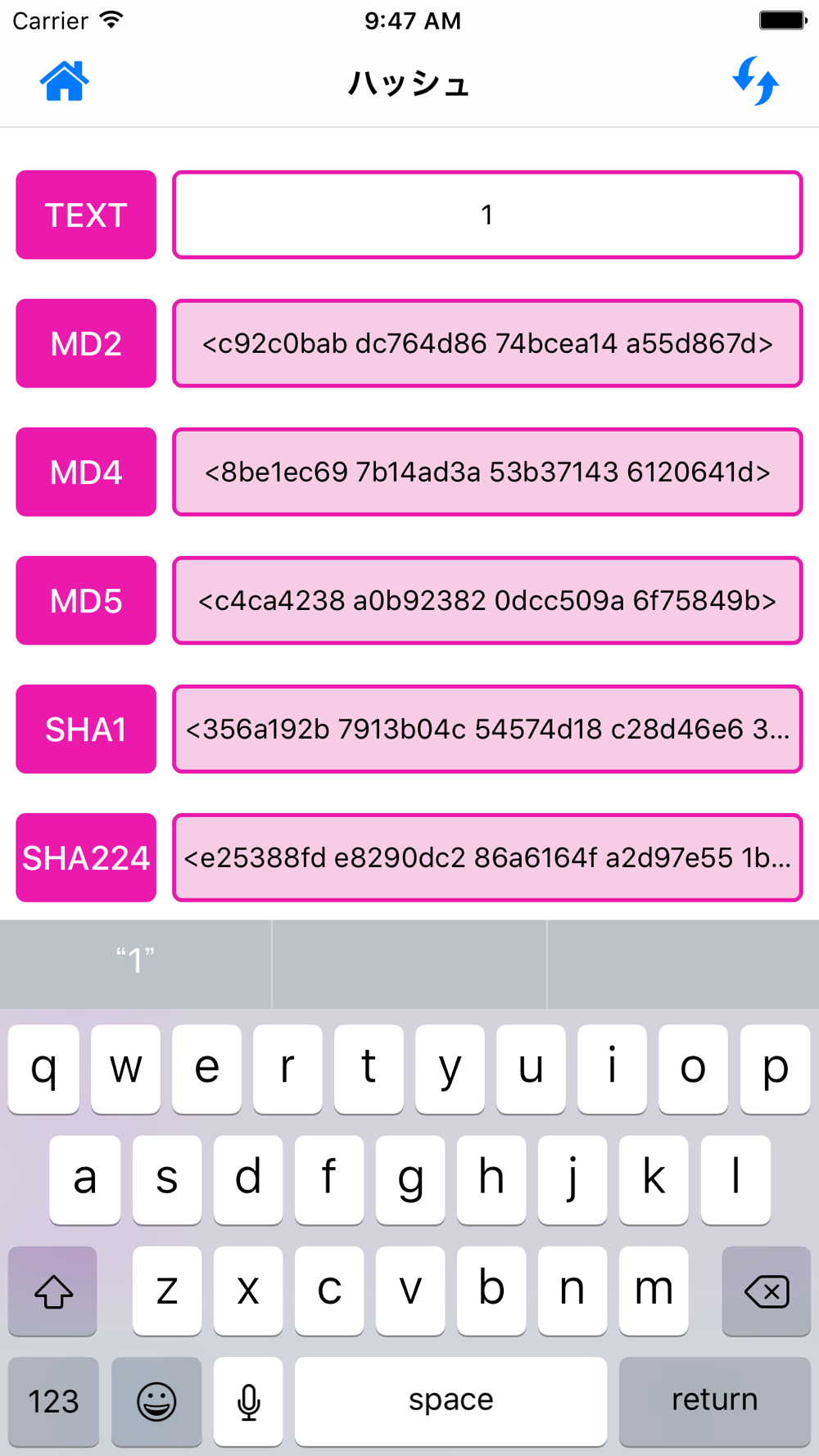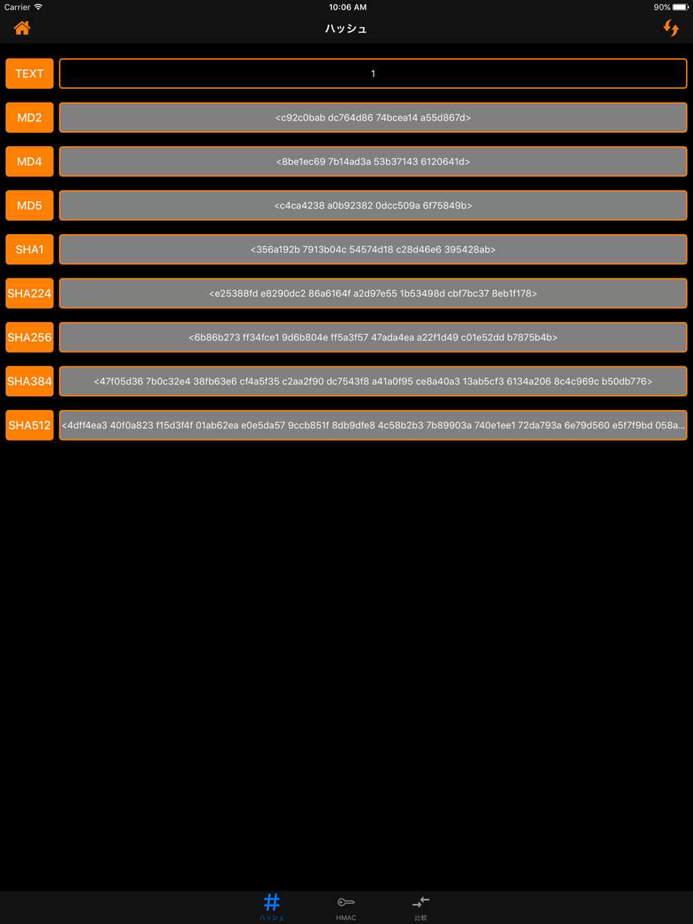 -命令: ちょうどあなたがハッシュしたいものを入力すると、結果が同時に表示されます。